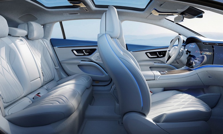 V vsakem primeru je notranjost Mercedes-Benza EQS pravi tehnološki presežek. Sedeži so denimo oblečeni v material imenovan Neotex, ki združuje Nubuk usnje (goveje usnje, katerega lice je rahlo obrušeno in daje lep značilen baržunast videz in otip) ter Microcloud (tehnološko obdelan neopren).