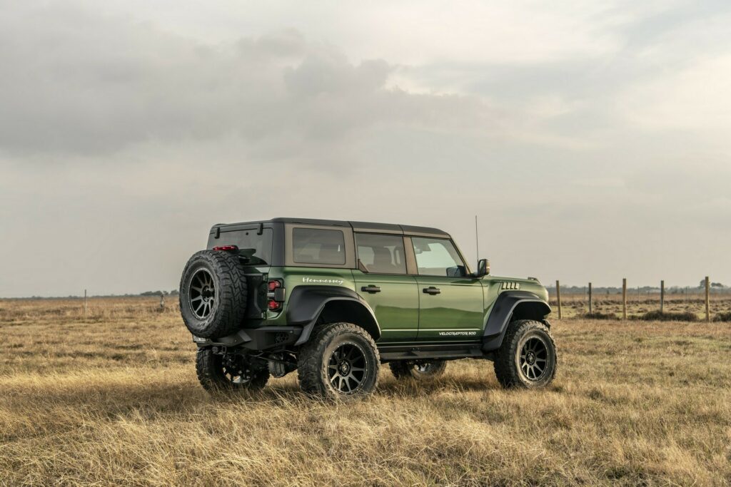 V kolikor se odločite svojega Bronca Raptor preobraziti v VelociRaptor 500, boste med drugim prejeli modificiran sprednji in zadnji terenski odbijač, 20-palčna Hennessey platišča s 37-palčnimi terenskimi pnevmatikami, Fox Live Valve sistem za prilagajanje vzmetenja do 75 mm višine vozila ter dodatne LED terenske luči.