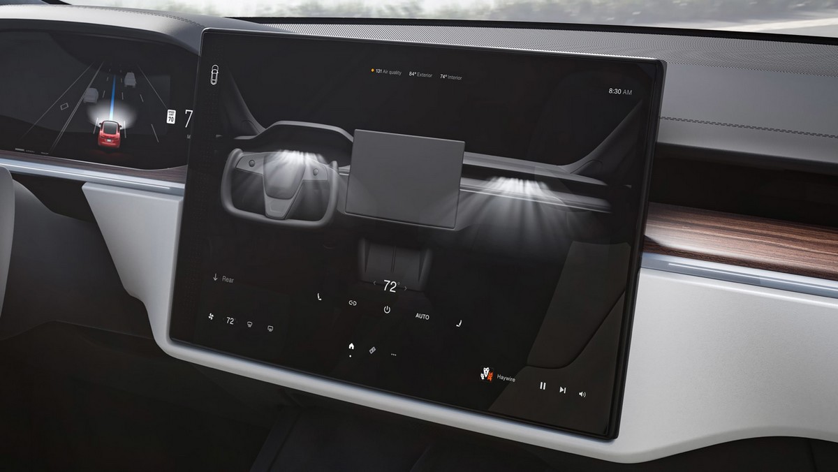 Vsi so bili deležni rahle osvežitve zunanjega oblikovanja z novim sprednjim odbijačem, širšimi pragovi, izrazitejšim zadnjim difuzorjem in novimi platišči, osrednja točka pa je drzna prenova kabine. Največ začudenja je pritegnil volan, ali bolje rečeno pilotsko krmilo, ki po najnovejših podatkih naj nebi bil sprejemljiv iz varnostnih razlogov, na Teslini strani pa naj bi sprememba kode povezave prikazala izbiro klasičnega okroglega obroča. Kakorkoli, če odvrnemo pozornost od volana, lahko opazimo nov horizontalno postavljen 17-palčni širokokotni zaslon, ki ga lahko zaradi lažje uporabe nagnemo proti vozniku ali sovozniku. Med drugim so dodali še 8-palčni informacijski zaslon na zadku sredinske konzole, s katerim se lahko poigrajo zadnji potniki.