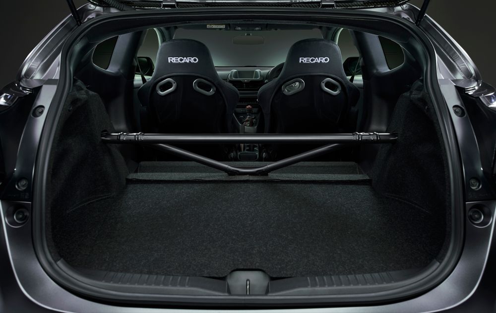 V kolikor vas je Yaris GRMN navdušil, imejte v mislih, da gre tokrat za dvosedežnika, Zadnjo klop je nadomestila prečna cev, ki še dodatno izboljša togost vozila, z odstranjevanjem druge vrste pa so pri Toyoti privarčevali 20 kilogramov. GRMN-ju so namestili Bilsteinove blažilnike in ga za 10 milimetrov bolj prbližali k tlom, obuli pa v 18-palčna BBS platišča.