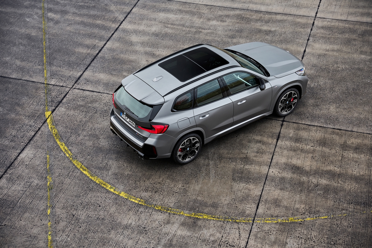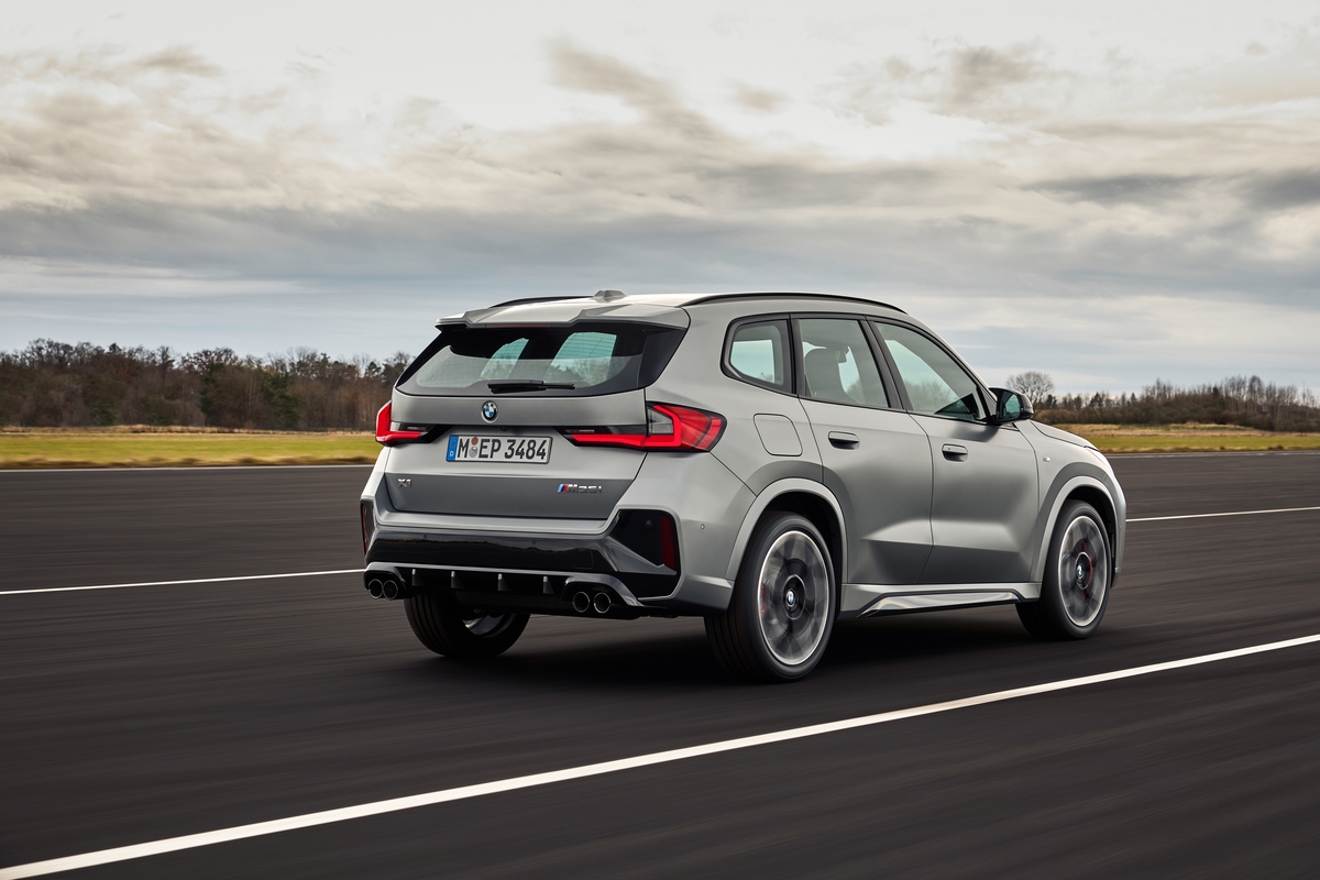 O tretji generaciji BMW-ja X1 in električni različici iX1 smo več zapisali že ob lanskoletni premieri, zato se bomo raje posvetili podrobnostim, ki opredeljujejo novo športno izpeljanko. Gre za podoben pristop kot pri sorodnem X2 M35i, kar pomeni, da ga poganja turbinsko podprt 2-litrski štirivaljni bencinski motor, ki v evropski specifikaciji premore 221 kW (300 KM) in 400 Nm navora, na voljo že pri 2.000 vrtljajih na minuto. Za prenos moči na vsa štiri kolesa skrbi bliskovit sedemstopenjski dvosklopčni samodejni menjalnik v sodelovanju z diferencialom z delno zaporo. Rezultat je kompaktni SUV, ki lahko stotico doseže v 5,4 sekundah in doseže najvišji hitrost 250 km/h.