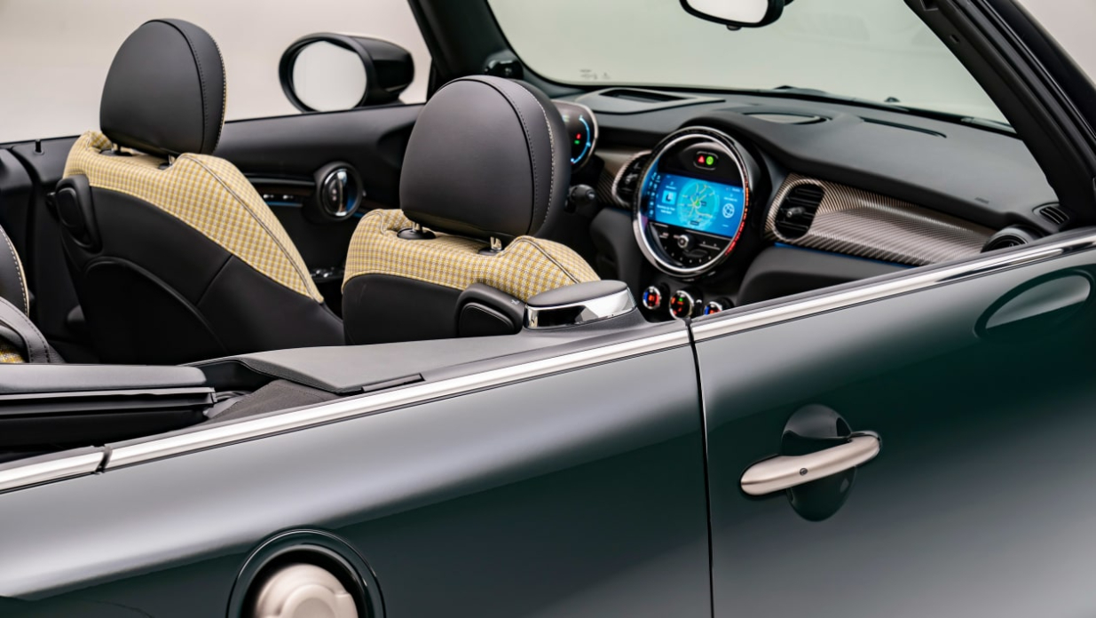 Začnimo pri opremi Resolute, ki bo na voljo pri manjši Minijih, trivratni in petvratni kombilimuzini, električni različici ter kabrioletu. Od ostalih modelov jih bomo ločili po črno obarvanih zunanjih ogledalih, beli strehi in Rebel zeleni karoserijski barvi, prej rezervirani le za najbolj nabrušenega Jonh Cooper Works. Prej kromirane zunanje okrasne elemente so nadomestili s klavirsko črnimi in bronastimi, dodatno so poudarjene obrobe žarometov, sprednje maske, pokrov motorja krasijo dirkaške črte.