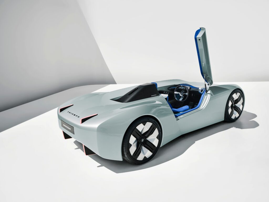 Ker ima BMW še vedno nekaj lastninskih pravic pri uporabi poimenovanja Triumph je povsem razumljivo, da so Britanci pozvonili na sedež bavarske firme in študijo Triumph TR 25 pravzaprav ustoličili na plečih električnega BMW i3S. Namesto kompaktne kombilimuzine je tako pred vami dvosedežni roadster, ki je kljub ojačitvam karoserije od svojega bavarskega sorodnika za 200 kilogramov lažji – in tako zmogljivejši. Menda do stotice pospeši v 5,2 sekunde, medtem ko upeha pri 185 km/h.