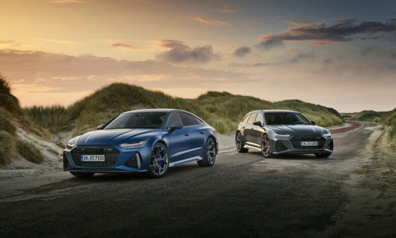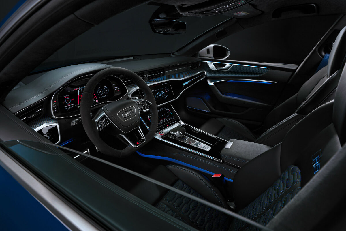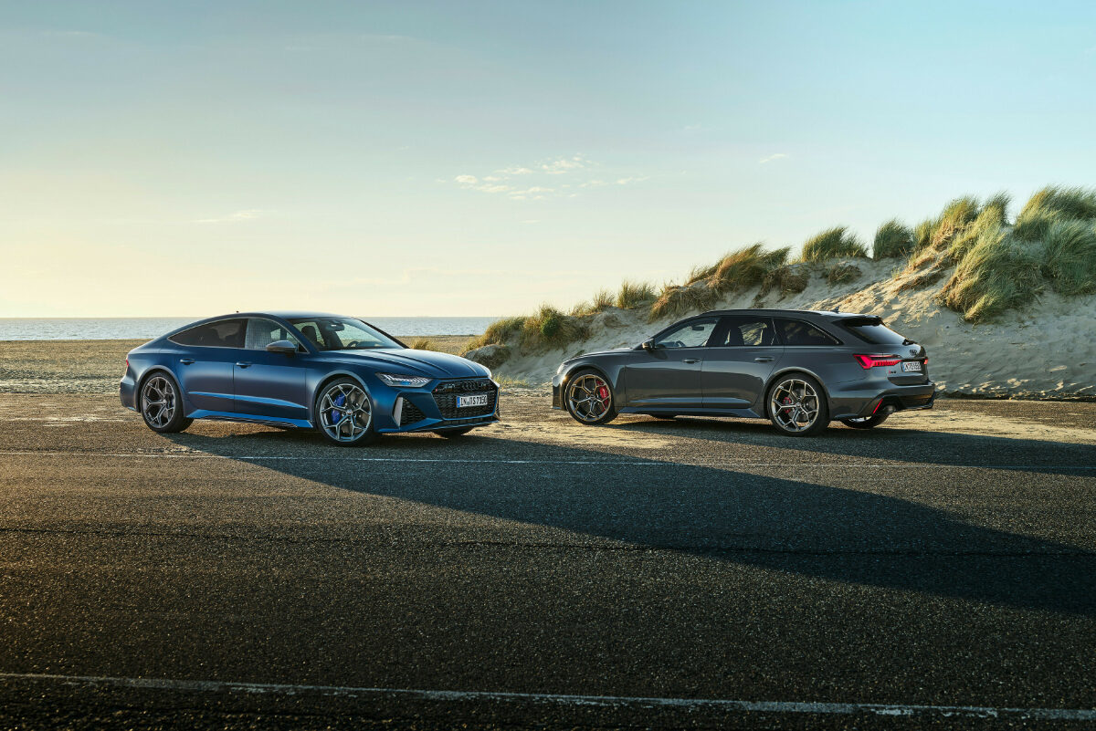 Kot pričakovano se RS6 Avant in RS7 Sportback performace ponašata še s prikladnimi kozmetičnimi olepšavami, saj so med zbirko karoserijskih barv dodali kovinsko ali matirano Ascari modro in Dew srebrno. Od povprečja bosta izstopala po mat sivih zunanjih ogledalih, elementih sprednjega odbijača, strešnih nosilcev, obrob oken in zadnjega difuzorja. V notranjosti so prvič RS design paket povečali z izbiro kontrastnega modrega prešitja, prej je bilo le rdeče. Sicer je večina površin odetih v kakovostno usnje, novost je alkantari podobna tkanina Dinamica v 45 odstotkih izdelana iz recikliranih poliestrskih vlaken. Dinamični dvojec bo mogoče naročiti od 8. decembra dalje, cena bo brez dodatkov znašala 135.000 evrov.