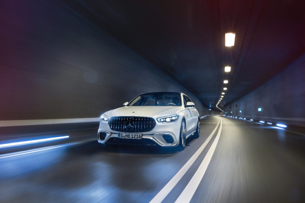 Sistem razvit v sodelovanju z domačo ekipo Formule 1 se manj osredotoča na električni doseg in bolj na povečano zmogljivost v vseh pogojih. S 590 kW (802 KM) sistemske moči in 1.430 Nm navora luksuzna križarka postavlja nova merila v segmentu. Pospešek do stotice traja zgolj 3,3 sekunde, najvišja hitrost je omejena na 250 km/h, z dodatkom AMG Driver’s Package se dvigne na 290 km/h. Sistemi, kot so serijsko adaptivno zračno vzmetenje AMG Ride Control+, AMG Active Ride Control proti neželenem nagibanju in krmiljenje zadnje osi do 2,5 stopinje, zagotavljajo širok razpon med vozno dinamiko in udobjem. Za varno zaustavljanje 2.595 kilogramske športne limuzine skrbijo standardne kompozitne zavore, z doplačilom so na voljo lažje karbon-keramične.