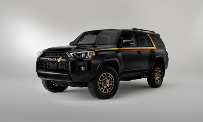 Posebna serija 4Runnerja, kot jo vidimo na fotografijah, bo omejena na 4.040 primerkov, zasnovanih na vstopnem paketu SR5. Kupci bodo lahko izbirali med tremi različnimi karoserijskimi barvami –bela, črna in rdeča – vsi pa bodo dodatno okrašeni z retro navdahnjeno poslikavo, spodaj pa bo za pogon skrbel standarden štirikolesni pogon.