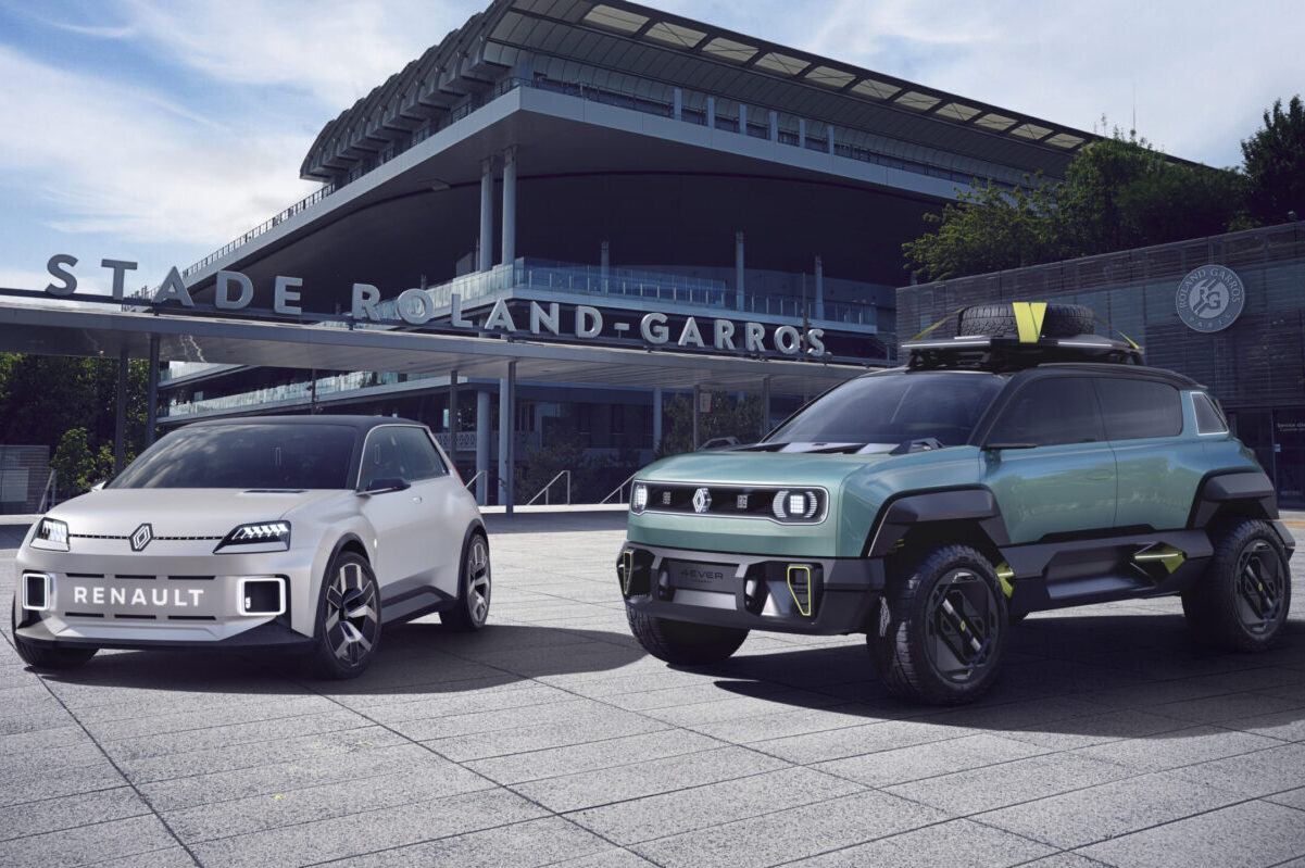 Glavna atrakcija med avtomobili bo najverjetneje prihajajoči električni Renault 5, s katerim so navdušili že leta 2021, ko so predstavili živo rumeno obarvan prototip. Sedaj so ga v čast velikemu športnemu dogodku odeli v novo kovinsko satenasto belo barvo in mu namenili številne oblikovne podrobnosti v poklon stadionu Roland-Garros. Na stranskih mrežah lahko opazimo simbolični križ svetega Andreja, ikonično številko 5 pa je nadomestil osvetljen logotip Roland-Garros. Za pridih elegance so obrobe oken okrašene s kromiranim satenom in platišča z anodizirano modro barvo. Z edinstveno različico novega prototipa Renault 5 napovedujejo prihod serijskega modela, načrtovanega za prihodnje leto.