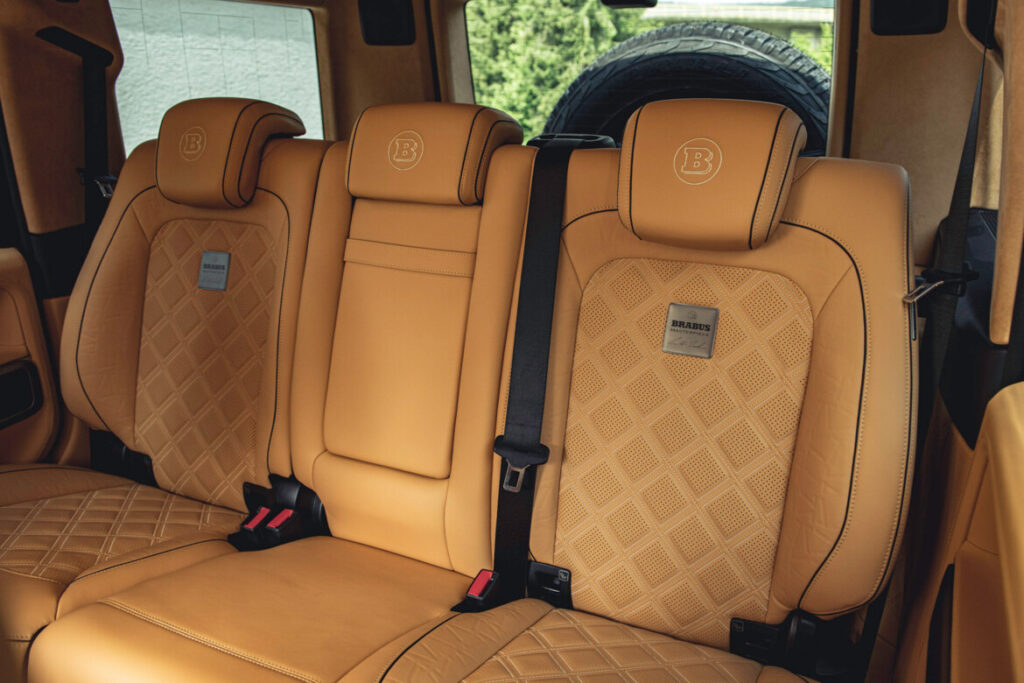 Začnimo kar na sprednjem delu, kjer se Brabus 800 4×42 baha z nastopaško masko, zaščito podvozja iz ogljikovih vlaken, novo LED osvetlitvijo in vitlom z vlečno silo 4.500 kilogramov, ki bo pomagal pri reševanju v zagati. Dodatno se pohvali s karbonskim pokrovom motorja z velikim zračnikom, osvetljenim Brabus logotipom in močno osvetlitvijo na strehi. Sicer so na streho nadeli še praktičen prtljažni nosilec z lestvijo za lažji dostop, preostanek karoserije nosi poširjeni paket Widestar, zadek pa zaščito odbijača. Barbus 800 4×42 sedi na 22-palčnih Monoblock HD platiščih obutih v terenske pnevmatike.
