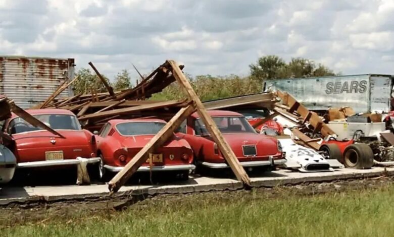 Čemu? Izjemno redka zbirka 20 Ferrarijev bo dražiteljem na voljo od 17. do 19. avgusta na dražbi RM Sotheby’s v Montereyu. Zbirka Lost & Found je po desetletjih, ki jih je preživela v skladišču, postala ena najbolj nenavadnih in nesrečnih najdb izpod „kozolca“. Leta 2004 se je, ko je po Floridi pustošil orkan Charley (prvi od štirih orkanov), zrušilo poslopje v kateri so bila vozila shranjena. Streha zgradbe je padla na nekatere avtomobile, zaradi česar so se razbile strehe in vetrobranska stekla, nekatera vozila pa so bila izpostavljena tudi vremenskim neprilikam.