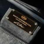 Med ostale zlato okrašene površine spadajo še številne EB značke, pokrov motorja in pokrovčka za olje ter gorivo. Češnja na vrhu smetane je zadnje krilce z napisom L’Ébé, prav ste uganili, z zlatimi črkami. Unikatna notranjost v kakovostnem modrikastem usnju je okrašena s preostalimi napisi L’Ébé in skicami različnih Bugatijevih modelov iz bogate, več 110-letne zgodovine.