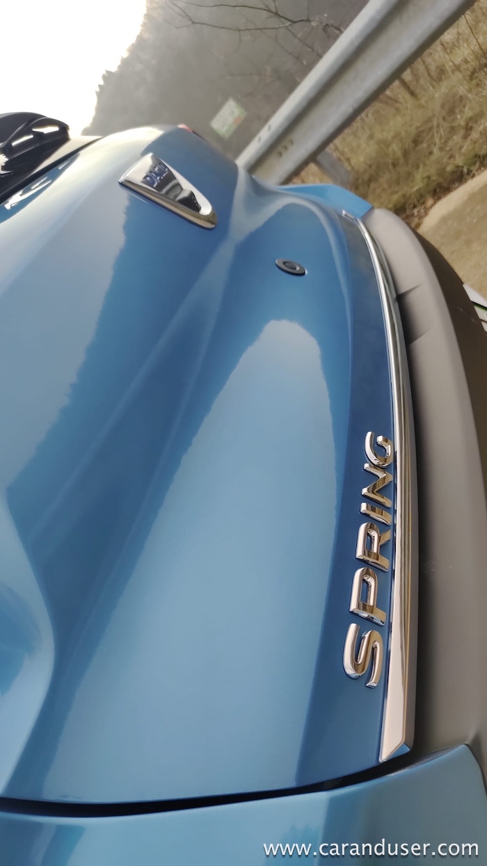 Glede same zunanjosti ne bi izgubljali besed, vseeno pa deluje kot neka mešanica Sandera in Twinga, ki so jo pomanjšali in nekoliko (ramensko) ojačali. Spring je kljub sorazmerno visokemu odmiku od tal (151 mm pri praznem avtomobilu) v prvi vrsti mestni avtomobil, ki meri v dolžino 3,73 m, širino 1,58 m (brez zunanjih ogledal) in višino 1,51 m (prazen, vključno s strešnima nosilcema). Pri zunanjem videzu gre omeniti paket Orange, ki je na voljo v začetni različici ob uvajanju na trg. Ta obsega zunanji vzvratni ogledali, okrasni del strešnih nosilcev, obrobe bočnih oblog in zračnih rež spredaj oranžne barve. V notranjosti so oranžni okrasni šivi na sedežih, obrobe zračnikov in multimedijskega zaslona, obloge vrat pa so svetlo sive barve. Potnikoma spredaj je na voljo za 23,1 litra odlagalnih mest od velikega predala za rokavice, do korit na vratih in žepa na osrednji konzoli. Potnikoma zadaj sta na voljo žepa na hrbtni strani prednjih sedežev.