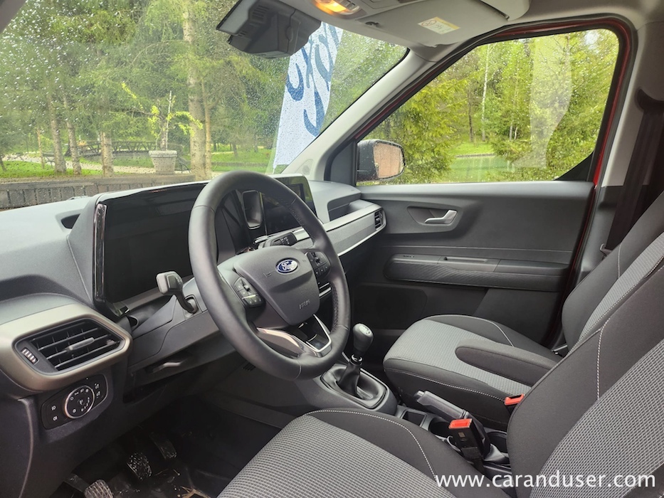 Zasnova karoserije je v Tourneu Courier optimizirana, zato je notranjost bistveno bolj prostorna in praktična kot v predhodniku, saj je v njej več prostora za potnike in prtljago. S preklopljenimi zadnjimi sedeži Tourneo Courier ponuja veliko prostora za večje predmete, saj ima do 2162 litrov prtljažnega prostora. Vsak Tourneo Courier je opremljen s trisedežno zadnjo klopjo, na kateri je več prostora za glavo in ramena kot pri predhodniku. Sedeži so deljivi v razmerju 60/40 ter se zložijo in preklopijo, da lahko prevažate predmete, dolge do 1,4 metra.
