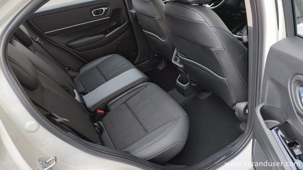 Posebnost novega HR-V je tudi lokacija rezervoarja za gorivo. Ta se po novem nahaja neposredno pod voznikom, kajti pod prtljažnim delom se nahaja električni sklop pogona. Ta je po sodobnih smernicah hibridne narave (e:HEV v Hondinem jeziku), tvorita pa ga 1,5-litrski prisilno polnjeni i-VTEC bencinski agregat z 79 kW in 131 Nm navora, ki mu bosta v pomoč dva elektromotorja z močjo 96 kilovatov in 253 Nm navora.