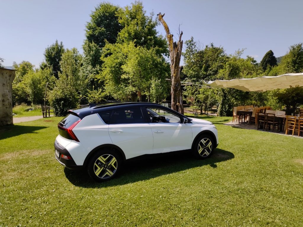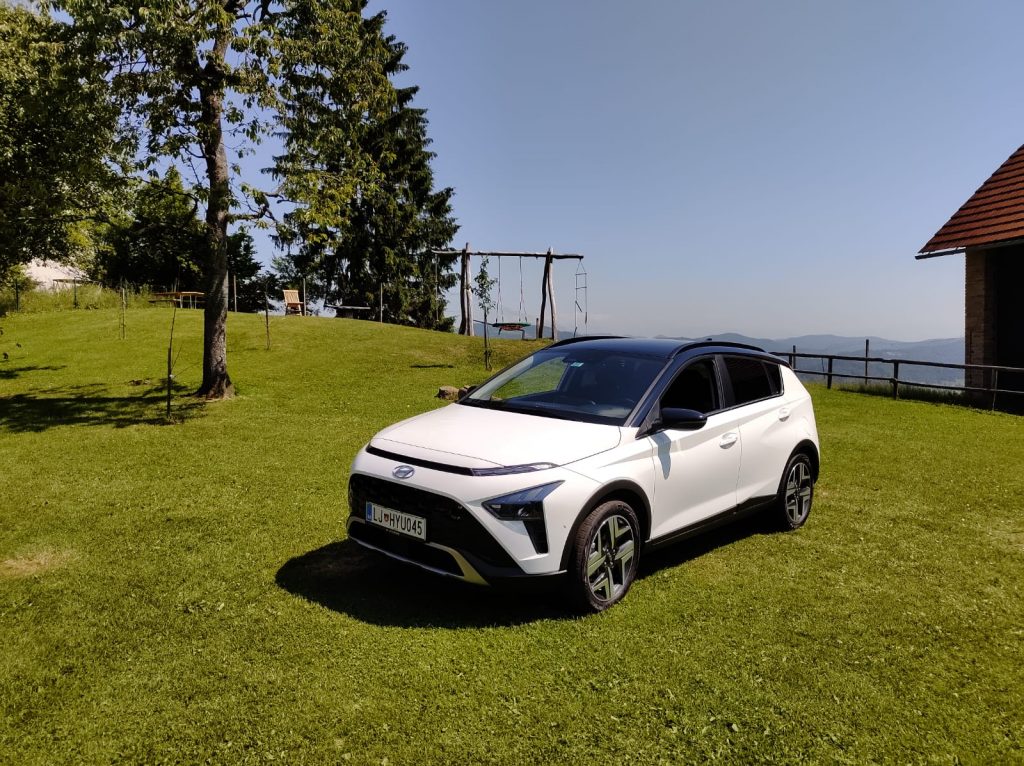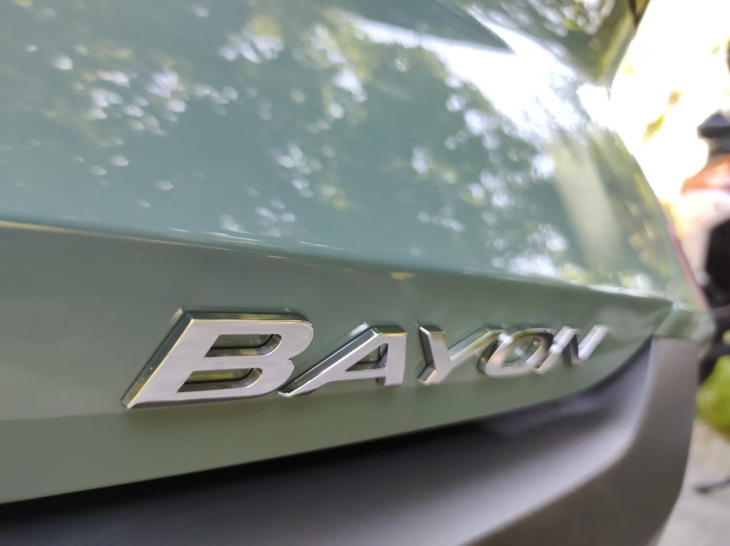 Nasičenost segmenta kompaktnih križancev Hyundaija ni odvrnila od namere, da z drznim modelom Bayon odrežejo del prodajne tortice. Kar takoj se podajmo v podrobnejši ogled novega konkurenta Nissana Jukea in Forda Pume. Za razliko od teh dveh, se Hyundai ni zadrževal, saj oblikovno prekaša oba tekmeca. Izrazit dizajn zunanjosti zaznamuje široka sprednja maska usmerjena navzdol, kar mu daj postavno držo. Tanki dnevni svetili in na rob pomaknjena žarometa se spogledujeta s sorodnimi bolj terenskimi vozili. S strani ga opredeljujejo ostre dinamične linije, zadnja osvetlitev pa spominja na obliko puščic, povezanih z vodoravno linijo. Zunanjost je dodatno popestrila izbira devetih karoserijskih barv, od teh jih bo sedem mogoče izbrati s kontrastno črno streho.