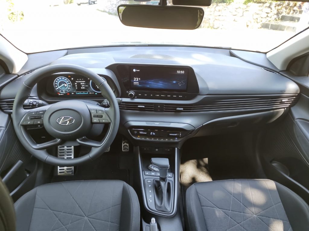 Odprtje vrat nam razkriva moderno prečiščeno notranjost, ki sledi najnovejšim trendom znamke Hyundai. Armaturno ploščo po pričakovanju zastopata dva zaslona, pred voznikom se nahajajo 10,25-palčni digitalni merilniki, sredinski informacijski zaslon meri 8- ali 10,25-palcev. Za prijetno počutje poskrbi ambientalna osvetlitev, za udobje pa so zadolženi sedeži oblazinjeni v nevtralnih barvah, čim bolj skladnih z zunanjostjo. Vsekakor ne manjka vseh tehnoloških dobrin, kot sta povezljivost Apple CarPlay in Android Auto, brezžično polnjenje mobilnih naprav ter najnovejša oblika storitve BlueLink. Ponujen je tudi širok spekter voznih in varnostnih pripomočkov za brezskrben občutek za volanom.