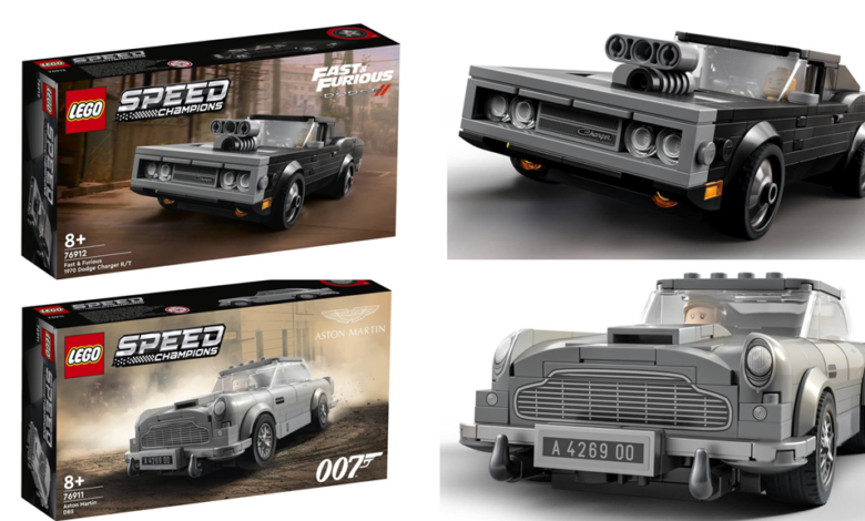 Zdaj se cestni legendi predstavljata v manjši podobi, v sklopu serije Speed Champions, ki slovi po ikoničnih ”kockastih” štirikolesnih konjičkih. Aston Martis DB5 vsebuje 298 kosov, medtem ko Dodge Charger R/T 345. Oba modela imata še nekaj posebnosti, tako so recimo modelu DB5 priložene različne filmske tablice. A največjo novost v portfelji prinašata minifigurici Jamesa Bonda in Dominica Toretta, saj sta edinstveni, predvsem pa hudičevo avtentični.