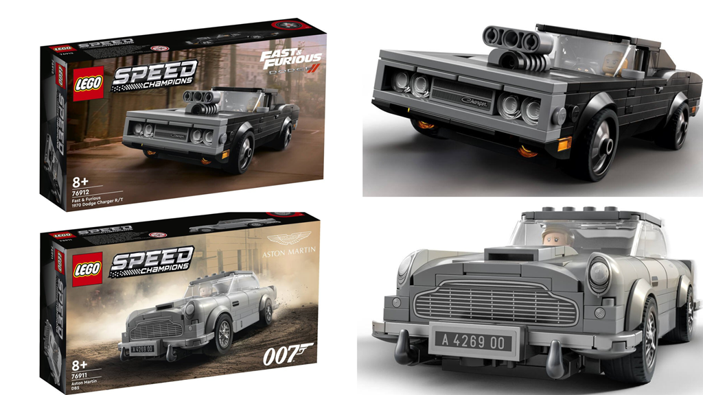 Zdaj se cestni legendi predstavljata v manjši podobi, v sklopu serije Speed Champions, ki slovi po ikoničnih ”kockastih” štirikolesnih konjičkih. Aston Martis DB5 vsebuje 298 kosov, medtem ko Dodge Charger R/T 345. Oba modela imata še nekaj posebnosti, tako so recimo modelu DB5 priložene različne filmske tablice. A največjo novost v portfelji prinašata minifigurici Jamesa Bonda in Dominica Toretta, saj sta edinstveni, predvsem pa hudičevo avtentični.
