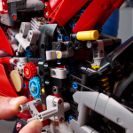 Ducati Panigale V4 S je bolj odrasla in kompleksna različica modela Ducati Panigale V4 R (42107), ki je bil predstavljen že leta 2020. Novinec bo nekoliko bolj ustrezal ljubiteljem Ducatijevega premiernega superbikeja. Kot večina modelov za odrasle je tudi ta komplet opremljen z natisnjeno informacijsko tablo in stojalom za poziranje.