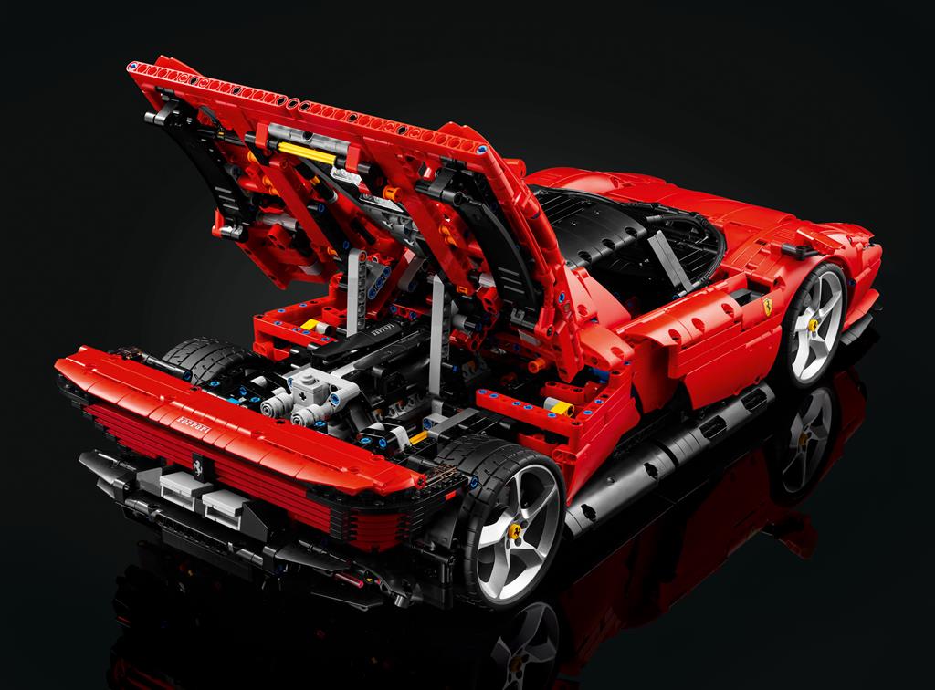 Model Ferrari Daytona SP3 je narejen v merilu 1:8. Temelji na nastajajočem superšportniku, količinsko omejenemu na samo 599 enot. Sestavljena maketa je visoka 14 cm, dolga 59 cm ter široka 25 cm. Vsekakor so se snovalci sestavljalnega kompleta potrudili, da bo izkušnja prvinska. Sestavljanje delujočega pogonskega kompleta 8-stopenjskega menjalnika ter V12 motorja s premikajočimi valji. Seveda ne manjkajo gredi za prenos moči ter diferenciali. Prvi sestavljavci navajajo, da je tokratni poudarek Lego sestavljanke na karoserijskem delu.