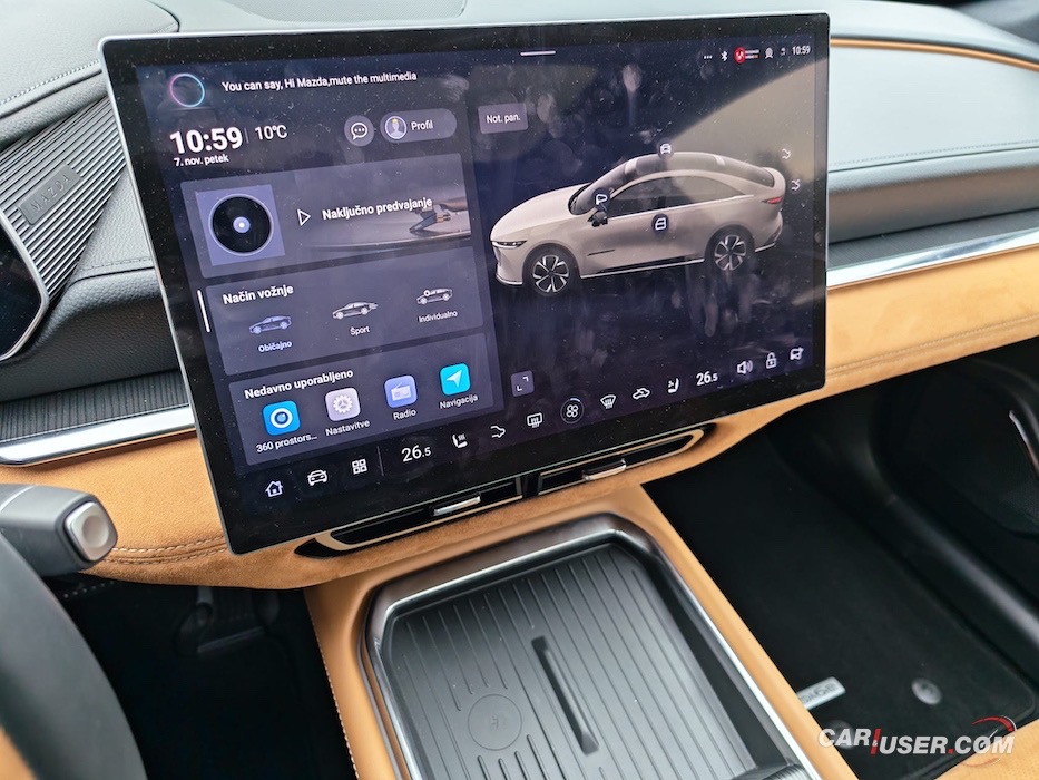 Kaj pa notranjost? Na primer, ko vozilo zazna ključ, se aktivira način dobrodošlice: stranska ogledala se razprejo, kljuke vrat se izvlečejo, vrata se samodejno odklenejo, voznika pa pozdravi značilna svetlobna signatura spredaj in zadaj. Glede na nastavitve se zadnji spojler diskretno razpre. Ko se vrata odprejo, se voznikov sedež premakne za 10 centimetrov nazaj, da olajša vstop, in se po vstopu vrne v prednastavljeno položaj. Pri izstopu iz avtomobila se zaporedje ponovi v obratnem vrstnem redu.