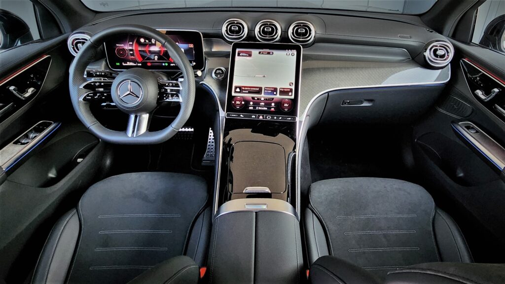 S 4.716 mm dolžine je za 60 mm daljši od predhodnika, podvozje je za 4 mm nižje, prav tako sta koloteka pridobila 6 mm v širino spredaj in 23 mm zadaj. Glavnino dodatne dolžine pripisujejo daljšem zadnjem previsu, ki je pripomogel k pridobitvi 50 litrov prtljažnega volumna, skupno je tako na voljo 620 litrov. Precej bolj drastično se je GLC spremenil v notranjosti, kjer gre se ponovno spogleduje z limuzinskim sorodnikom, z elegantno armaturno ploščo in ukrivljeno sredinsko konzolo, zaključeno z velikim 11,9-palčnim pokončnim zaslonom na dotik.
