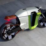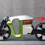 Francozova zasnova ohranja značilno obliko izvirnega motocikla, ki je imel seveda nameščen agregat z notranjim izgorevanjem. V tej sodobni različici je ta prostor prazen, kar omogoča, da plavajoči logotip in močna navpična razdelitev poudarita celotno strukturo. Sedež se zdi viseč, kar prispeva k dinamični silhueti, usnjena torbica za orodje pa se navezuje na dediščino vzdržljivostnih dirk, ki jo je imel izvirnik.