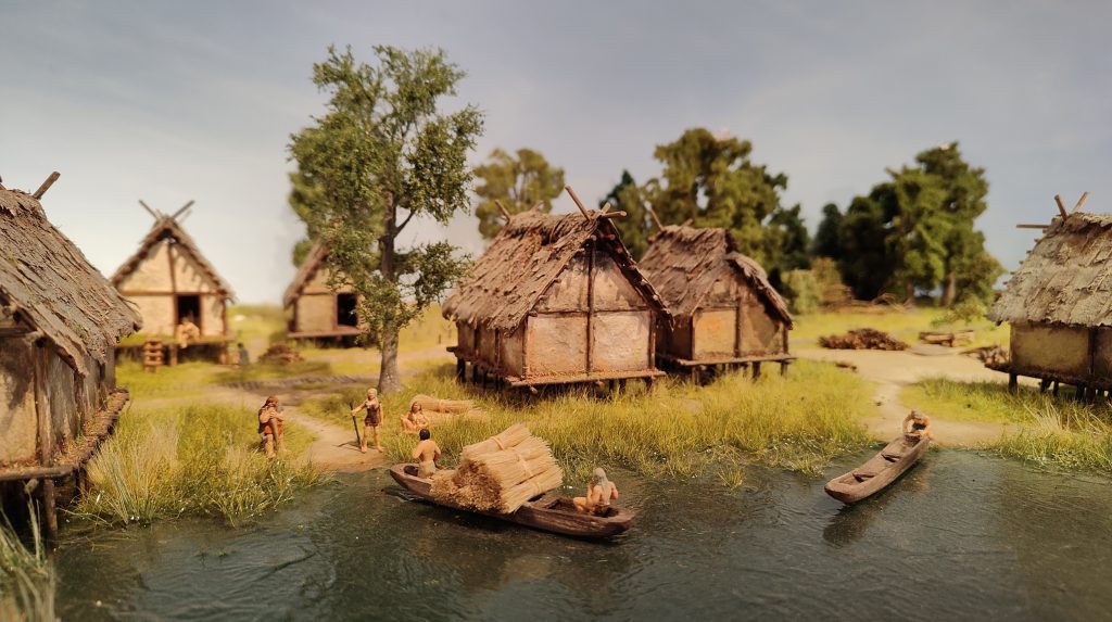 »Koliščarsko maketo “Stare Gmajne ” na Verdu pri Vrhniki prikazuje življenje koliščarjev pred okoli 5200 leti. Na maketi so prikazane bivajoče in zapuščene kolibe, ostanki kolib, drevaki, s katerim so se vozili po jezeru, cesta iz brun in najbolj pomembno odkritje – najstarejše kolo na svetu z osjo, ki so ga leta 2002 našli arheologi, med njimi tudi dr. Velušček, s katerim sem tudi najtesneje sodeloval pri ustvarjanju,« pove Igor Grabnar, ki v pogovoru ves čas izpostavlja, da je pri dioramah najpomembnejša zgodba in manj sam izdelek, ob tem pa dr. Anton Velušček nadaljuje: »Ko smo razmišljali, kako predstaviti utrinek iz življenja na predstavljenem kolišču, smo seveda morali sklepati kompromise, vsa dognanja je bilo treba strniti na skupni imenovalec, jih postaviti v en koliščarski dan, v en trenutek. Lahko zatrdim, da je koliščarski vsakdan prikazan precej verodostojno, tako smo opozorili, da kolišče ni nastalo na en mah, da je bilo naselje razpršeno, da so poznali voz, za plovbo po jezeru so koristili drevake, čolne izdolbene iz enega debla, da so se ukvarjali z metalurgijo bakra, da so bila v bližini naselja drevesa …«