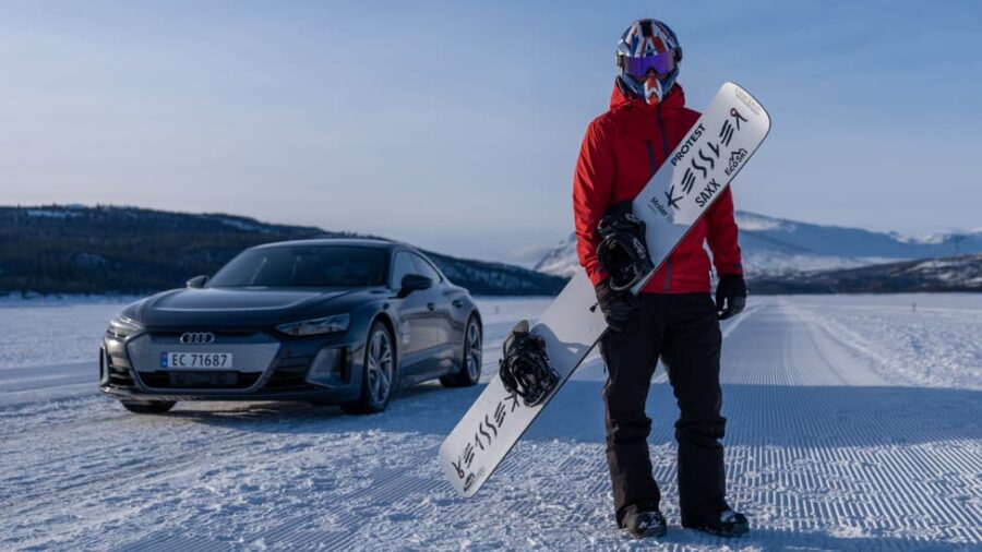 Kakšna je bila potem rekordna dosežena številka? Deskar Barrow se je spustil do najvišje hitrosti 211 km/h. Do vrtoglave hitrosti je deskarja popeljal Audi e-tron GT. Tako je, GT v standardni obliki, kaj vse bi bilo mogoče, če bi si zaželeli različico RS. Gre seveda za šalo, a takšen podvig brez dvoma zahteva veliko poguma in znanja obvladovanja snowboarda.