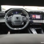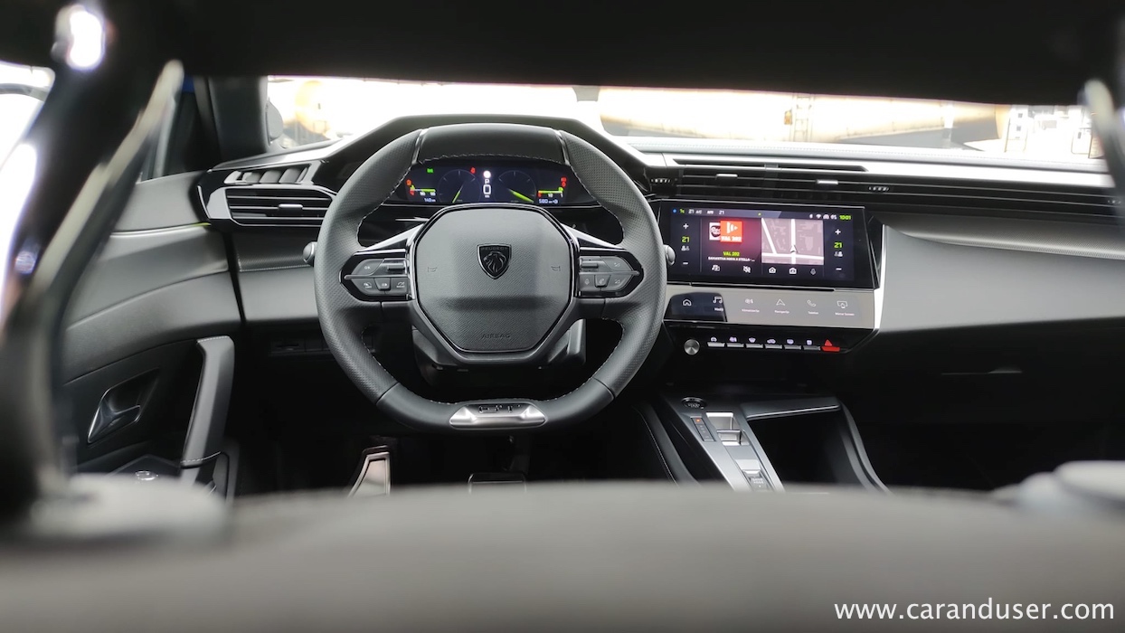 Kabina novega 308 sledi trenutnim smernicam podjetja z digitaliziranim 10-palčnim i-Cockpit voznikovim okoljem. Dodaten sredinski informacijski zaslon na dotik prav tako meri 10-palcev, pod njim se nahajajo gumbi bližnjic, s prilagodljivimi funkcijami. Edina pomanjkljivost je izguba hitrih fizičnih gumbov za upravljanje klimatske naprave. Drugod lahko pohvalimo še povečanje notranjega prostora, podaljšanje medosja posledično zadnjim potnikom ponuja več udobja, vsi odlagalni prostorčki po kabini skupaj znesejo presenetljivih 34 litrov prostornine.