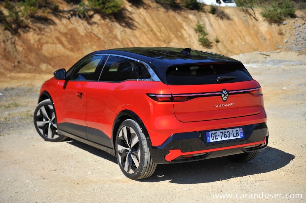 Renault Megane E-Tech Electric je dimenzijsko celo nekoliko krajši, bo pa imel vsled vgradnje baterij daljše medosje, zato prostornost niokrnjena. Menda ima vozilo precej nizko težišče (9 cm nižje od aktualnega Megana), kar so inženirji ustvarili s pomočjo le 110 milimetrov visokih baterij, porazdeljenih po dnu karoserije. Končna masa vozila znaša približno tono in 600 kilogramov, kar je glede na pogon odličen dosežek. Baterija s kapaciteto 40 ali 60 kWh bo namreč napajala elektromotor z močjo 96 ali 160 kW in 250 oziroma 300 Nm navora. Dovolj, da boste kilometrsko stotico prečili v nekaj več kot sedmih sekundah, medtem ko povprečna avtonomija znaša 300 oziroma največ 470 kilometrov. Polnjenje? Do 22 kW na izmeničnem toku in v zameno za dodatno plačilo do 130 kW na enosmernih polnilnih postajah.