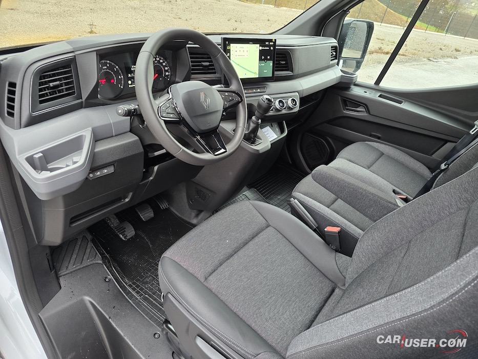 Notranjost novega Masterja odraža sodobno delovno okolje, podobno potniškemu vozilu. Armaturna plošča v obliki črke S ustvarja občutek prostornosti, 10-palčni zaslon, serijski v celotni liniji, pa dodaja pridih moderne povezljivosti. Kokpit se podvoji kot delovna postaja, saj je mogoče naslonjalo srednjega sedeža spremeniti v pisalno mizo, ki sprejme prenosni računalnik in je opremljena z USB-C priklopi za polnjenje naprav. Prav tako lahko povežete (brez)žično tipkovnico in osrednji zaslon uporabite kot zaslon računalnika. Prostor za shranjevanje je bil povečan za 25 odstotkov na skupnih 135 litrov, s čimer je Master postal vodilni na področju v svojem razredu.