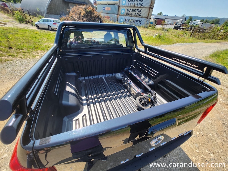V Evropi se tovrstna karoserijska zasnova prijemlje počasneje, toda roko na srce, številke govorijo, da je vsak dan več ljubiteljev ogromnih poltovornjakov. In kuj železo, dokler je vroče, so pomislili tudi pri SsangYongu in predstavili Mussa Granda. Kot domala vsi pick-upi, tudi Musso brezsramno postreže z gaberiti. Slednji so zares impozantni. V dolžino meri 5,4 metra, v širino 1,95 in v višino 1,88 metra. Tovorna obremenitev znaša 1.140 kilogramov, medtem ko je vlečna zmogljivost tri tone. Največja skupna dovoljena teža vozila in prikolice tako znaša 6.450 kilogramov (ročni menjalnik) in 6.750 kilogramov (samodejni menjalnik).