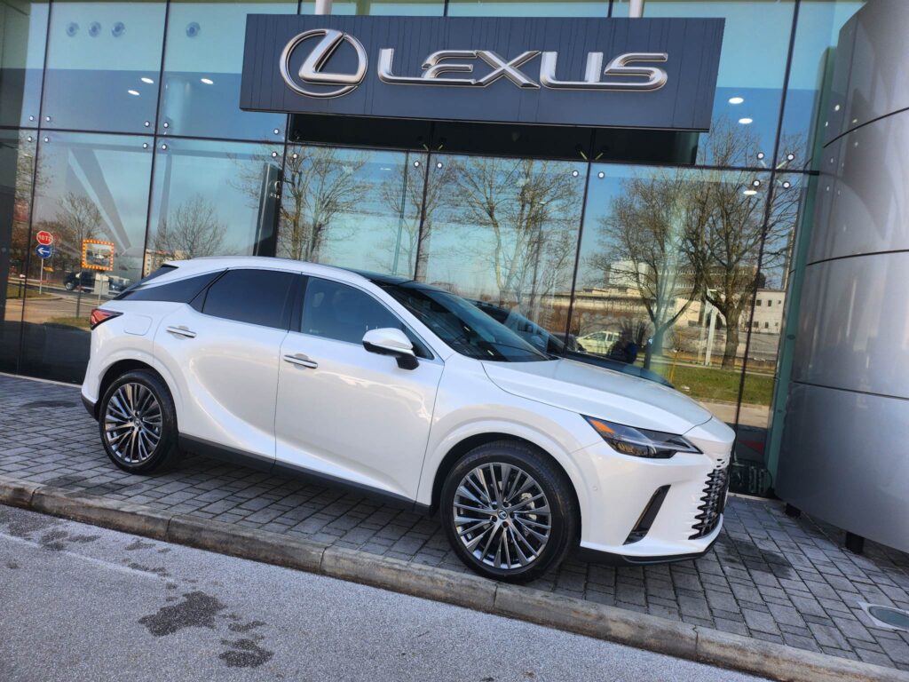 Priključno-hibridni RX 450h+ prav tako uporablja eCVT menjalnik in enak 2,5-litrski motor, vendar ju kombinira z dodatnim elektromotorjem na zadnji osi ter 18,1 kWh baterijo na dnu vozila. Zmogljivejši pogon ustvari 309 KM in 572 Nm navora, dovolj za doseg stotice v 7 sekundah ter 65 kilometrov neslišne vožnje do hitrosti 135 km/h.