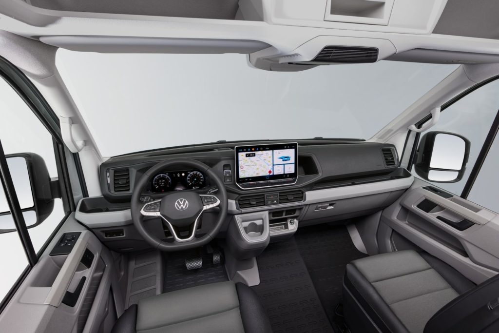 Navzven praktično nič novega, medtem ko je v kabini temu popolnoma drugače. Tam je voznikov prostor sedaj bistveno bolj podoben VW osebnim vozilom, saj bo v standardni ponudbi na voljo 10,3-palcev zajeten osrednji zaslon občutljiv na dotik, ki vključuje enake drsne gumbe za nadzor glasnosti in temperature klimatske naprave. Pri določenim različicah bo možno izbrati nekoliko večji 12,9-palčni zaslon, v obeh primerih usklajen z voznikovim digitalnim instrumentacijskim zaslonom. Nadgrajena je bila tudi programska oprema, ki bo po novem nudila tudi ChatGPT skupaj z glasovnim upravljanjem.