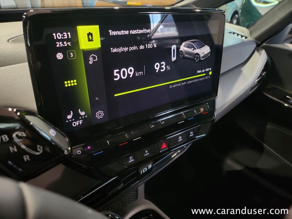 Šibka točka ID.3 vse od prihoda je bila uporabniku neprijazna in počasna digitalna arhitektura, kar so rešili s spremembami okovja, ne le s posodobitvami preko spleta. Pred voznikom ostajajo 5,3-palčni digitalni merilniki, sredino armaturne plošče zastopa 12-palčni zaslon (proti koncu leta bo na voljo tudi 12,9-palčna) na dotik s preurejeno postavitvijo funkcij, podpro storitev Apple CarPlay in Android Auto ter izboljšanim sistemom planiranja poti z iskanjem hitrih polnilnic. Drsni ploščici za nastavljanje temperature klimatske naprave in glasnosti ozvočenja sta sedaj osvetljeni, na voljo je tudi projicirni zaslon z razširjeno resničnostjo. Velja omeniti še nekaj asistentov, ki jih boste našli v ID.3. Tu so: Travel assist 2.0, prediktivni tempomat in omejevalnik hitrosti, parkirni sistem parkpilot, kamera za vzvratno vožnjo, 360-stopinjska kamera, Car2X, funkcija večnaletnega zaviranja …
