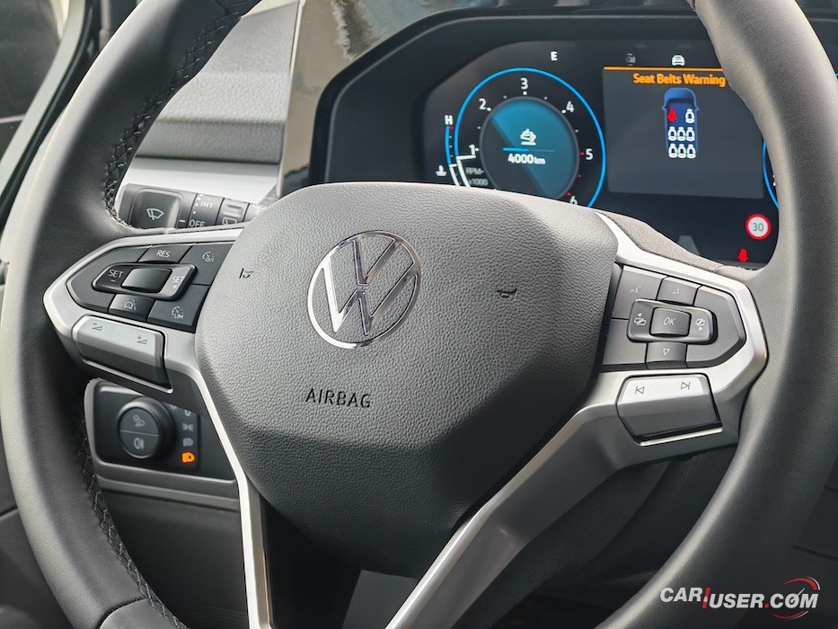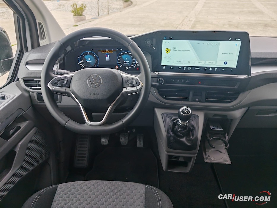 Če je posodobljen videz nekakšna evolucija predhodnikov s pridihom aktualnih hišnih linij Multivana in ID. Buzza ter zadnjih luči po vzoru Amaroka, je v malce bolj sodobno – digitalno smer – zavila prenova ambienta. Tam je več digitalizacije, ki pa vseeno ni tako izrazita kot pri osebnih vozilih. Jedro tvorita 12-palčni voznikov in 13-palčni osrednji multimedijski zaslon, ki še vedno domujeta ob kopici uporabnih stikal ter raznih 12 V ter nenazadnje tudi do treh 230 V električnih priključkov. Slednje velja le za priključni hibrid ali popolnoma električni model.