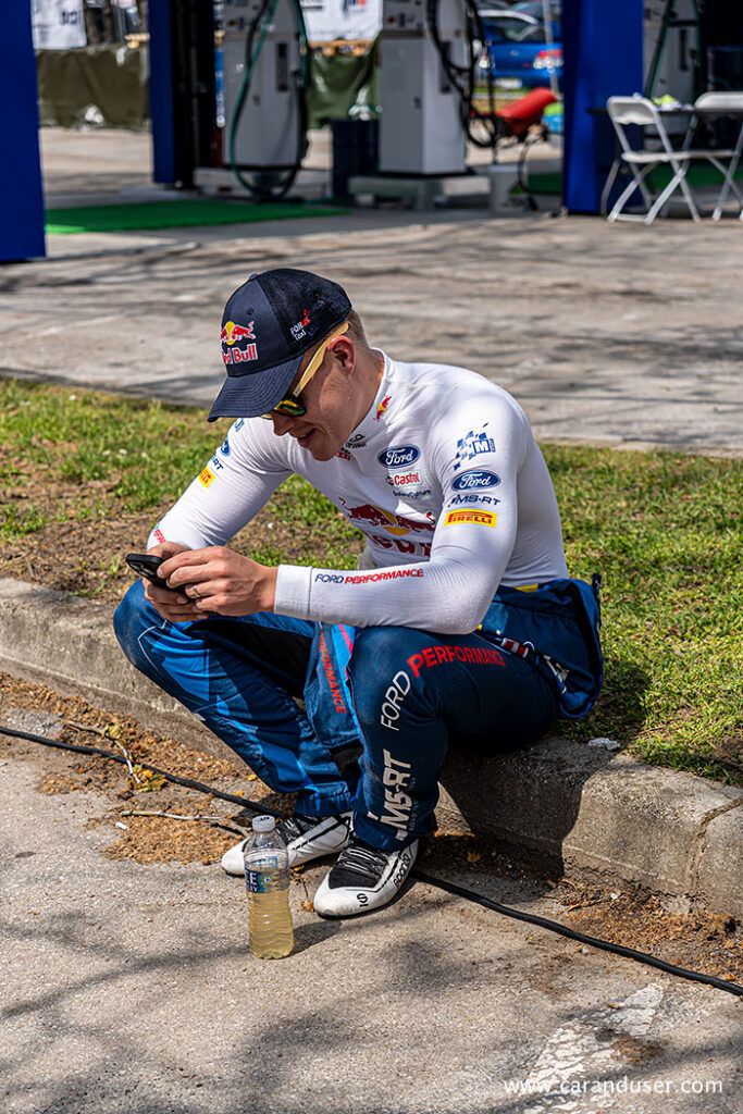 Komaj pregledamo servisne garaže vseh ekip, že mine odrejenih 40 minut servisa in dirkači se tokrat v električnem načinu odpravijo nazaj v boj z zavoji. Pred tem sledi zgolj še kratek postanek pri uradnem opremljevalcu goriv in kot zanimivost lahko povemo, da dirkalnike WRC prvenstva poganja povsem sintetično gorivo.