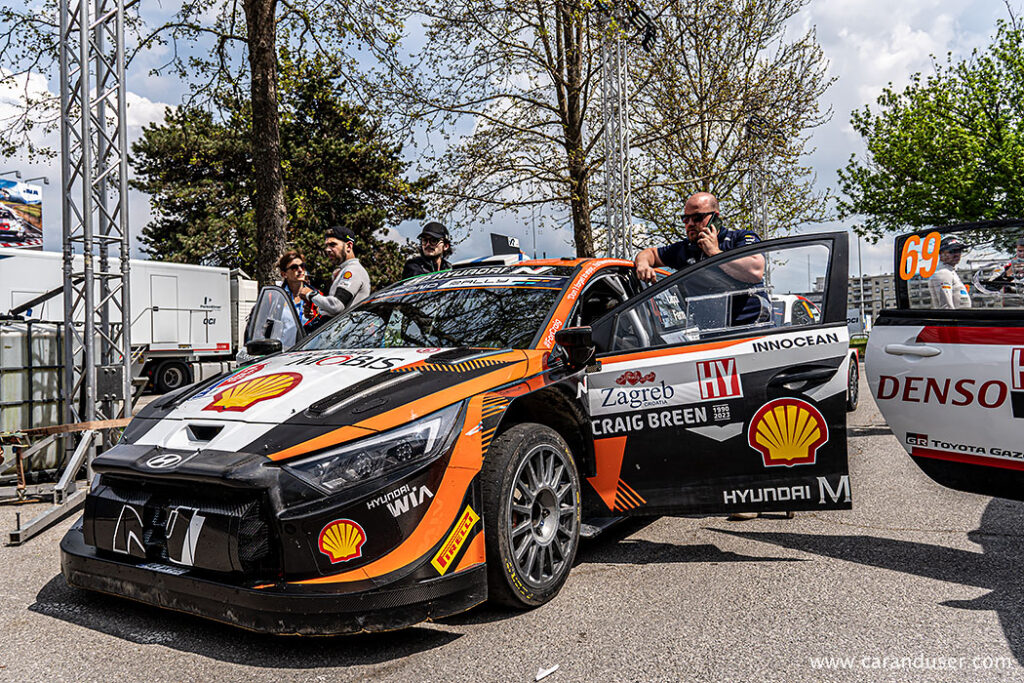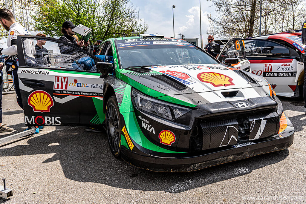 Tako so v petek, v mešano cono, s svojimi hibridnimi dirkalniki po zagrebških ulicah prihrumeli Thiery Neuville (Hyundai), Ott Tanak (Ford M-Sport) in Sebastian Ogier (Toyota) in na ogled postavili svoje dirkalne specialke, nekatere med njimi že tudi s prvimi bojnimi ranami iz ozkih hrvaških cest. Po kratkih čustvenih intervijujih je za vse dirkače sledila tehnična kontrola in potem prvi 40 minutni servisni postanki.
