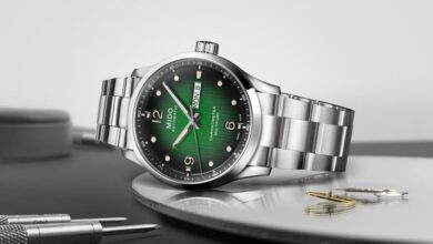 Mido predstavlja novi Baroncelli Chronograph Moonphase, prefinjen časomer, ki združuje funkcije kronografa, popolnega koledarja in prikaza luninih men. Modro številčnico,…