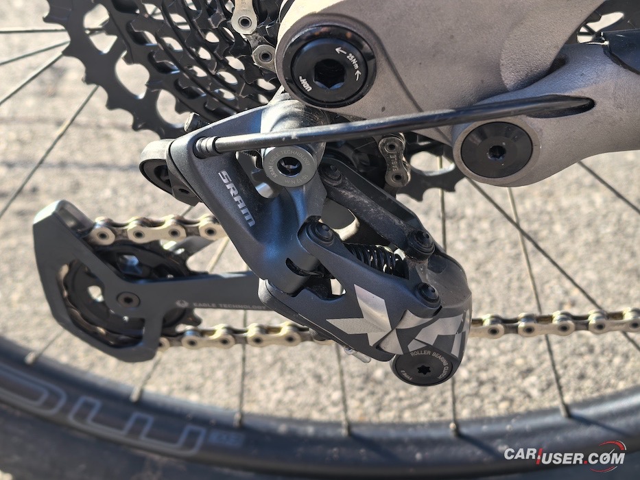 Odklon od sicer množično uporabljenih Shimano ali Sram je dobrodošel. Po naši oceni so zavore korak pred Shimanom in Sramom, saj v kombinaciji z rotorji Galfer zagotavljajo izjemno zavorno moč ob hkratni zelo dobri modulaciji zavorne sile. Po domače, močno ustavljajo, ampak moč lahko zelo nežno dovajamo. Gonilni sklop je mehanski Sram X01, ki zagotavlja natančno in hitro pretikanje, obenem pa je tudi zelo vzdržljiv. Lahko se naredi tudi upgrade na elektronski Transmission, a v bistvu ni prav nobene potrebe po tem. Geometrija A170 sili v optimizem in precenjevanje spustaških sposobnosti. V primeru 180 mm amortizerja, znaša kot sprednje vilice zgolj 63,6 stopinj, kot sedežne opore pa strmih 77,3 stopinj, kar zagotavlja suverenost na strmih, popravek zelo strmih spustih in hkrati dobro pedaliranje v strmino. Dovolj tehničnih podrobnosti. Sledi odgovor na najpomembnejše vprašanje. Kako se bicikel pelje?