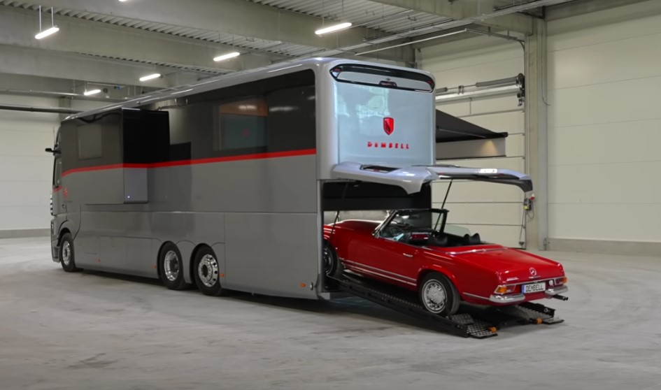 Dembellov avtodom sloni na Mercedesovi šasiji, notri pa boste našli avtomatske vstopne stopnice, futuristično zasnovo notranjosti z možnostjo povečanja, garažni boks, pralni stroj, pomivalni stroj, integrirano stropno posteljo … no, kot že rečeno, priloženi posnetek bo odstrnil slehrno skrivnost. Še tole. Dembell avtodome sestavljajo kar pri nasih sosedih Madžarih, torej če boste v bližini, žepi pa se vam bodo pričeti trgati od predebele denarnice … no, verjamemo, da bodo imeli dovolj asov v rokavu, da bo račun bistveno lažji … V uredništvu se le sprašujemo, kako zahtevno bo s takšno „kravo“ rokovati po ozkih obmorskih cestah in seveda kampih …