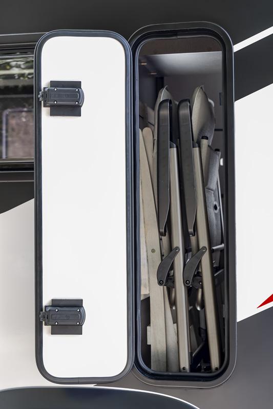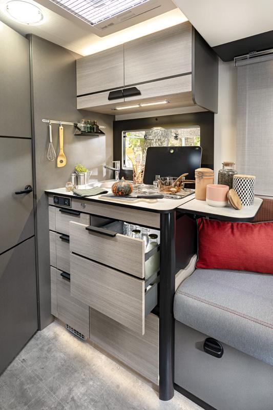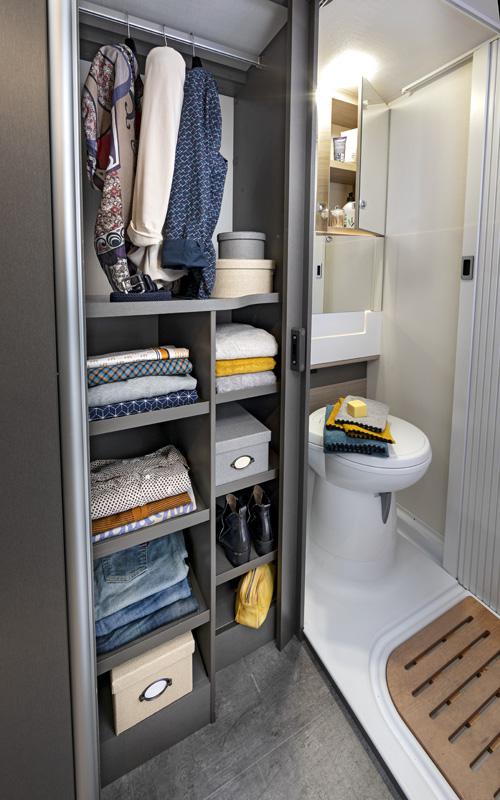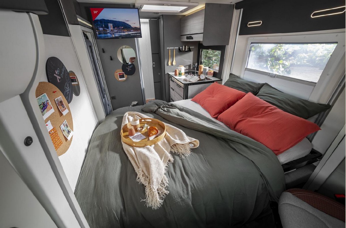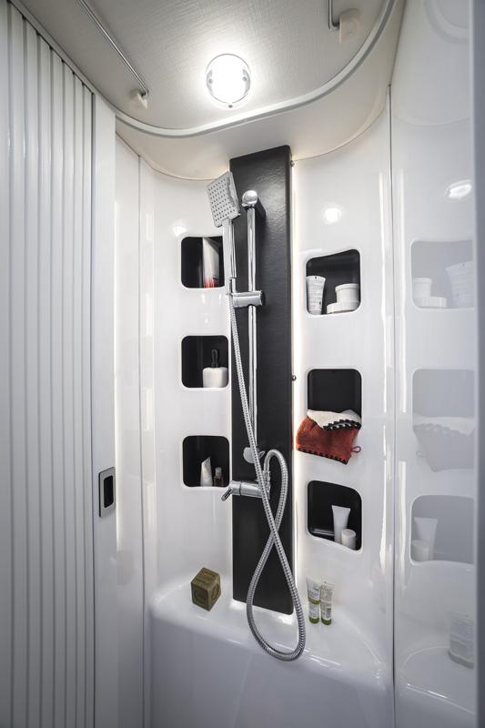 Med najbolj pomembnimi prednostmi v bivalnem prostoru je polno opremljena kopalnica s tušem, omarico, ogledalom in straniščem. V kabini najdemo še kuhinjo s 134-litrskim hladilnikom, paket vključuje tudi baterijo za shranjevanje električne energije, 4-kilovatni dizelski ogrevalni sistem in 10-litrski grelnik vode.