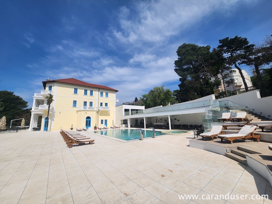 Naše bivanje na rivieri Crikvenica smo nadaljevali v Boutique hotelu Esplanade. Butični hotel je zasijal na crikveniški promenadi davnega leta 1930, sodobni pečat pa so mu vdihnili pred nekaj leti, ko je tudi doživel prenovo v okviru naložb skupine Jadran. Hotel ponuja 38 sob, ki se med seboj precej razlikujejo. Vse sicer ponujajo nadstandardno udobje, a med 38 sobami lahko izberete tudi takšne, kjer se boste lahko razvajali v savni.