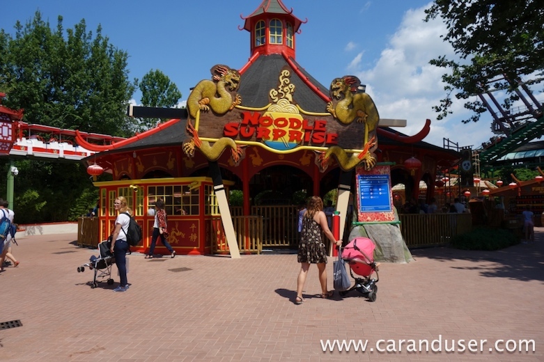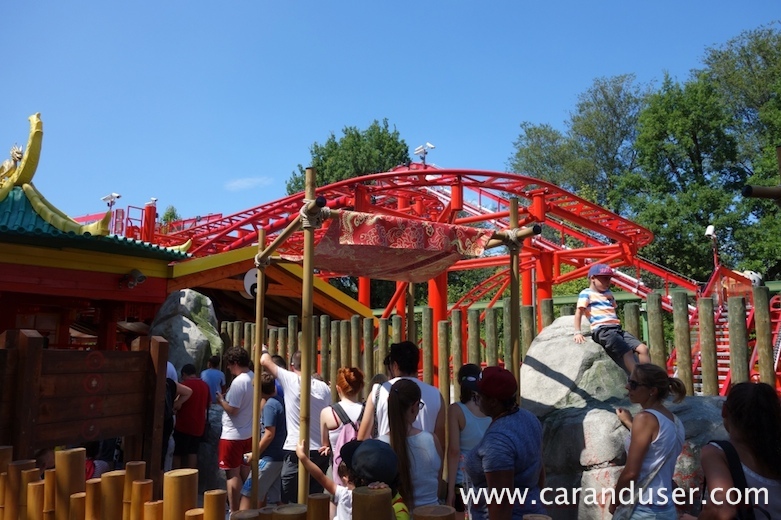 Opisovati vseh 34 atrakcij bi bilo pravzaprav nesmiselno, saj jih v enem dnevu tudi nemogoče preizkusiti. In ker se v večini snovalcev portala www.caranduser.com skriva (večkrat tudi odkriva) adrenalinski odvisnik, se bomo posvetili predvsem tistim napravam, ki so označene z zeleno in rdečo – slednje so za tiste z malo več ja.. v hlačah. Letošnja novost je Akademija kung fu Panda. Gre za predel zabavišča, ki je namenjen mlajšim obiskovalcem. Znotraj boste našli preprost vlakec, kamor lahko brez potu posadite vašega malčka, nekaj stojnic z igrami na srečo (ali znanjem), kjer navadno izgubite in zimzelene šalčke. Čeprav so slednje prvenstveno namenjene otrokom, pa boste tam brez težav zasledili tudi starše, ki zlivajo gnev pri vrtenju prikupnih skodelic. Na „zelenem oddelku“ boste našli še tri vodne dogodivščine, ki vas utegnejo nasmejati do solz … V kolikor vas ne bodo zmočile solze, pa vas bodo zagotovo naprave.