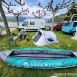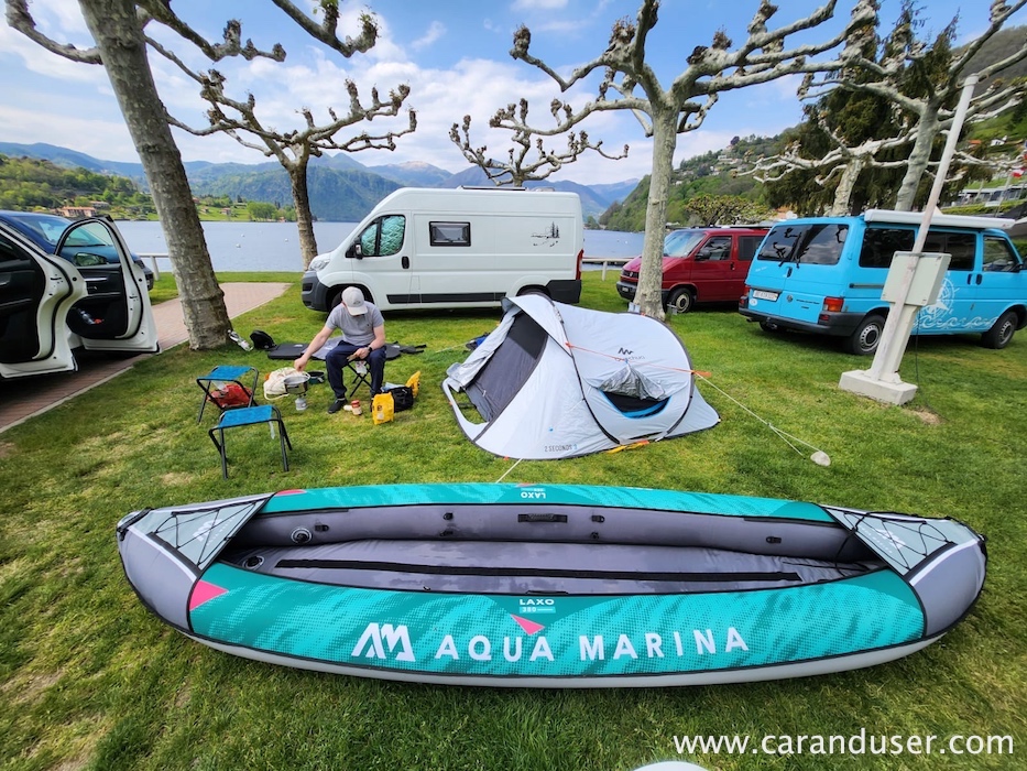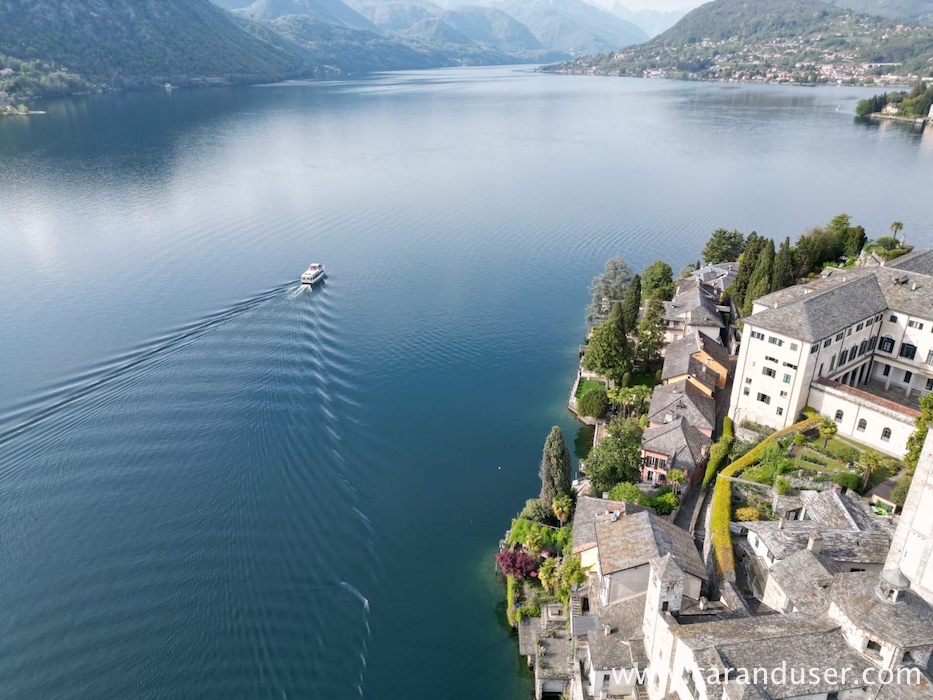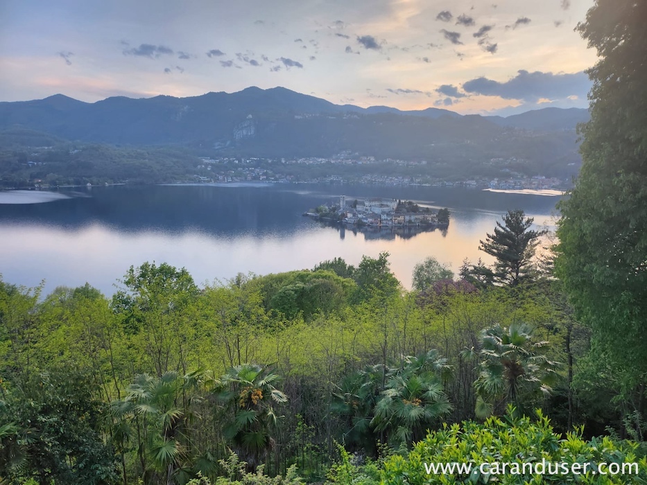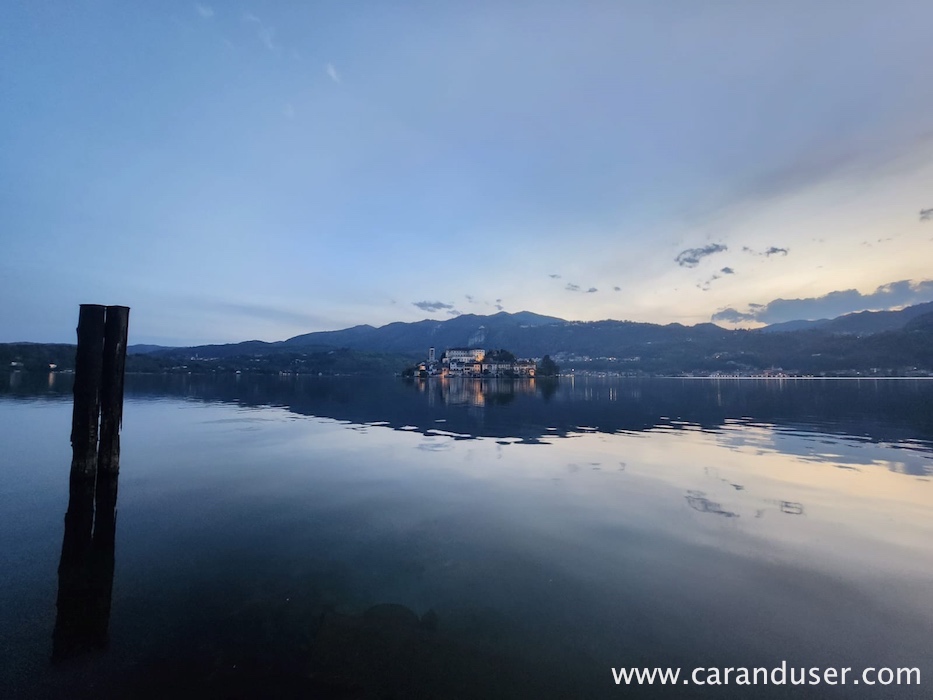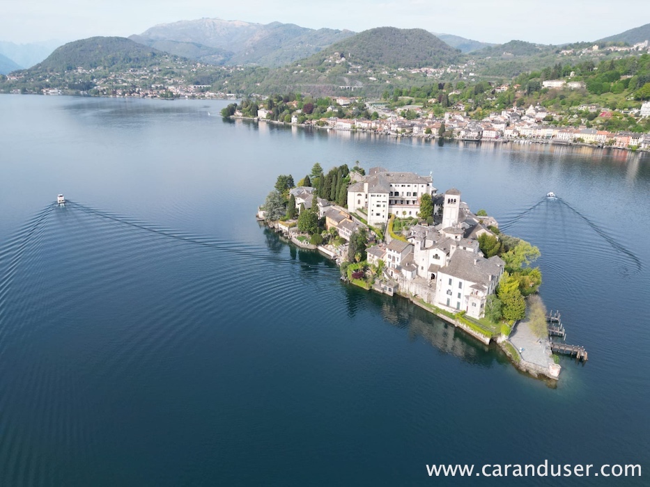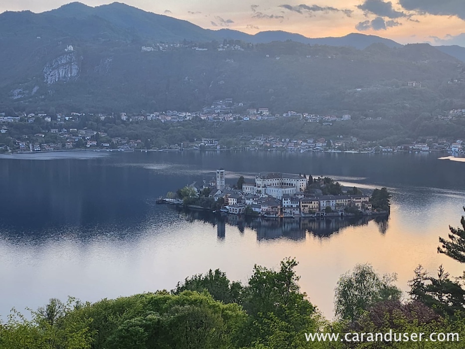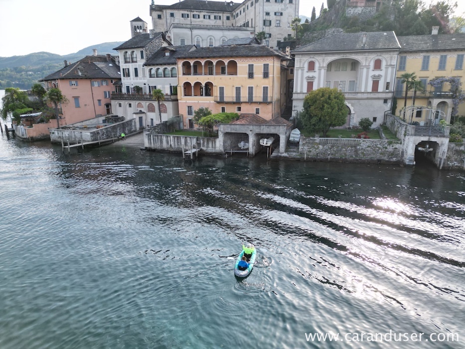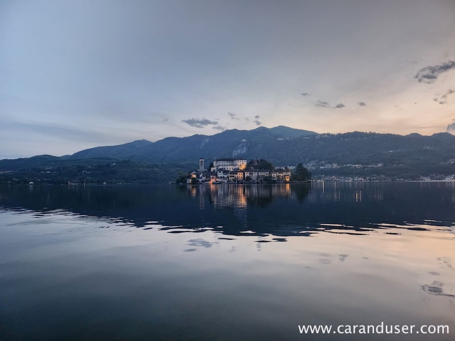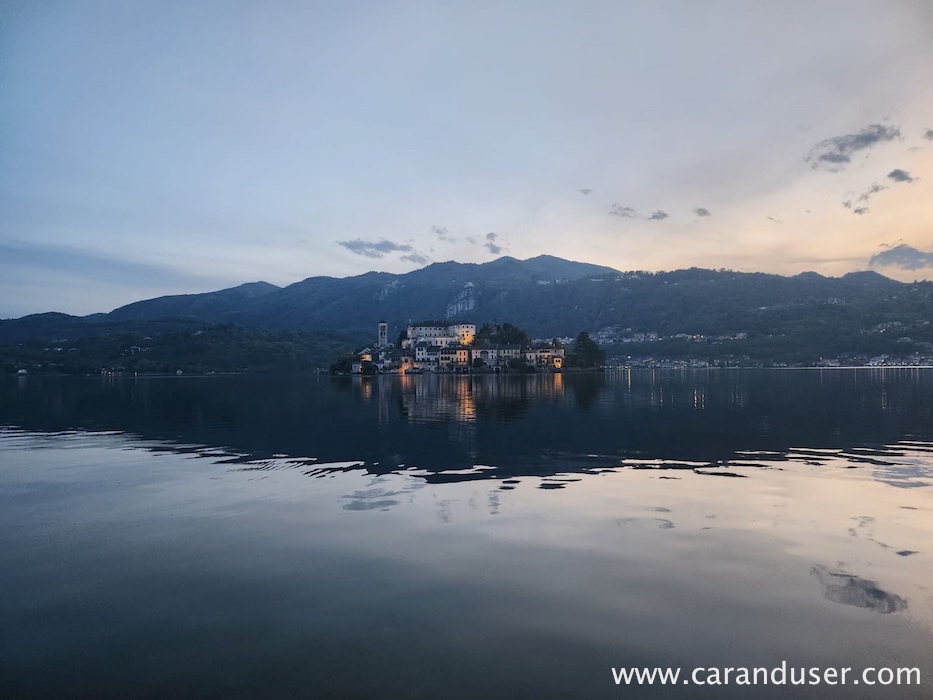 Jezero Maggiore je sicer precej veliko, a mi smo naš čas namenili kraju, ki smo ga izbrali izključno na Google Mapsih. Pot od enega do drugega jezera vodi preko hribovitih cest, a je pokrajina, ki jo boste uzrli iz vozila prava paša za oči. Jezero Lago d’Orta je biser Italije, ki ga boste le redko videli v turistični ponudbi. Iskreno povedano je to eden najlepših krajev kar sem jih kadar koli uzrl v svojem življenju. Kot bi nekako našel skriti zaklad. V okolici sicer ne mrgoli kampov, a Camping Orta je res vzorno urejen (trava je takšna, da boste raje bosi stopicljali po travi). Za nočitev, šotor, avtomobil in tri osebe smo plačali vsega 33 evrov! Tudi tukaj smo kaj hitro pljunili v roke in napihnili kajak. Po dobrih pol urah plovbe vas pričaka prečudovit pogled. Na sredini jezera je namreč otok, kamor peljejo tudi številne turistične ladjice. Mi smo z našim kanujem potrebovali dobro uro iz kampa do otoka. Težko je opisati vzdušje na njem. Nekako impresivno, temačno, osupljivo. Po otoku vodi krožna pot, na sredi pa – kako nenavadno – še sakralni objekti. V enem od njih je našel večni sen balzamiran veljak, čigar ime je nam ostalo nepoznano.