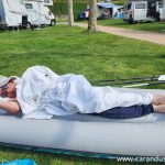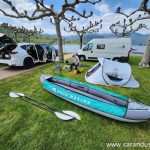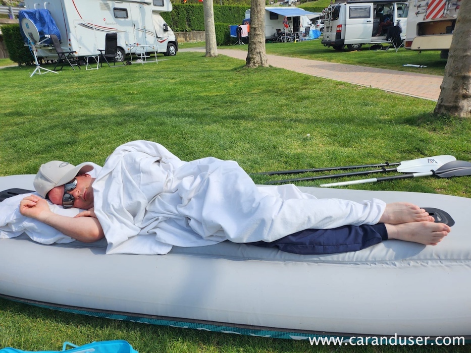 Da je jutro minilo z nekaj več srčnimi udarci, je bil zopet zaslužen avtomobil. Tokrat se mu je čez noč spraznil akumulator – to pot po naši krivdi. A kamp je kot ena velika družina, kjer so vsi hipoma pripravljeni na pomoč. Najprej smo prosili soseda šotorista, če lahko „zavergla“ avtomobil, da bomo lahko našega obudili s klemami, a je bil njegov avtomobil žal preslaboten. Hja, big bojse z avtodomi čez cesto bo potrebno pobarati. Slednji so imeli pravo skladišče vseh (ne)uporabnih izdelkov – še sreča. S pomočjo „starošolskega“ avtodoma, čigar elektriko je dovajal ogromen akumulator, smo obudili našega štirikolesnega družabnika in se odpeljali naprej.