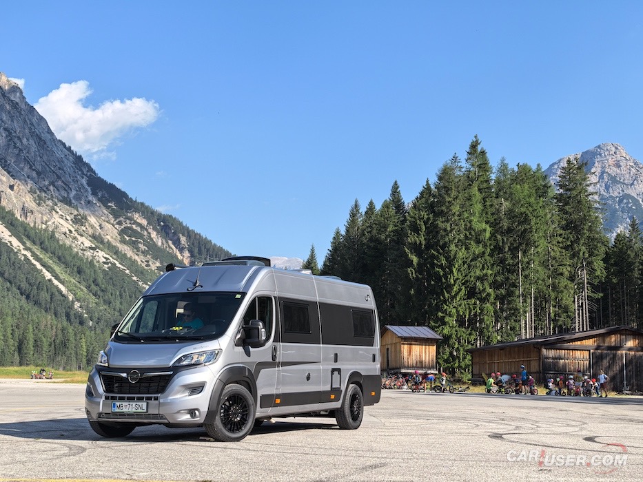 Naš testni lepotec je bil deležen predelave na osnovi Opla Movana, kar pomeni, da je bivalna zasnova nekoliko drugačna kot pri „običajnih“ avtodomih. Največja razlika so velika stranska vrata, ki se odpirajo čez velik del boka vozila. Z dolžino približno 6,4 metra, širino 2 metra (brez ogledal) in višine 2,6 metra, je Mega Sport 640 kot ključ, ki odpira vrata številnim možnostim. Ni prevelik, da bi vas preveč obremenjeval s težavami pri parkiranju ali vožnji, vendar dovolj prostoren, da boste uživali v vsakem trenutku na poti. Še vedno je potrebno vzeti z obzir, da gre za kombi, ki je bistveno večji od povprečno velikih osebnih avtomobilov, kar pomeni, da boste morali izhod/izvoz načrtovati še preden se boste lotili podvigov ozkih poti ali parkirnih mest.