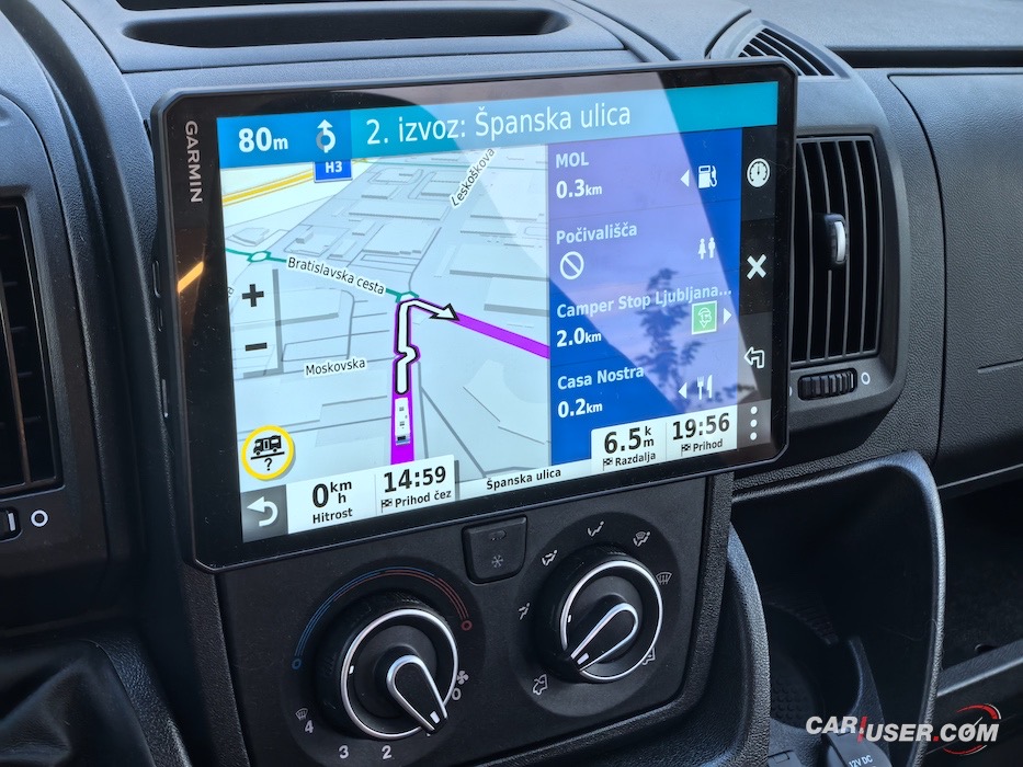 Ker gre za nadgradnjo so v vozilu tudi številna druga pomagala, ki pa imajo ravno zaradi vsega tega svoje pomanjkljivosti. Denimo Garminov osrednji zaslon ponuja vse od radia, bluetooth povezave, zadnje kamere (slednja je, milo rečeno, nuja!), navigacije … Težava nastane zgolj v tem, da je nekoliko muhasta in prilično ne opravlja svoje namembnosti … navadno ravno takrat, ko bi nek element najbolj potrebovali (bodisi kamero, bodisi navigacijo). Po drugi strani so pri Garminu vključili domala vse radarje po dolomitih, tako da boste o „nevarnosti“ pravočasno opozorjeni. S solarnimi paneli, ki so nameščeni na strehi, boste lahko napajali vse svoje naprave, pa tudi osvetlitev avtodoma, ne da bi morali iskati električne vtičnice. Velja omeniti, da ima Mega Sport 640 odlično rešeno gretje in hlajenje, a za slednje boste morali biti priklopljeni na zunanje napajanje.