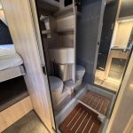 Mi smo se na pot odpravili kot trio. Prostora za potovalke je bilo dovolj, shranjene pa so bile pod spodnjo latoflex posteljo. Nad zgornjo posteljo so štiri omarice, kamor boste lahko spravili dobršen del vaše garderobe. Nasploh je vozilo izdelano brezhibno in v stilu najvišjih standardov. Tudi vsa okna in zavesice dajejo občutek trdnosti in dolgoživosti. Za tiste najbolj zagrete kempiste, je v vozilu še televizija, zalogovnik s čisto vodo je bil odmerjen z 80 litri, medtem ko je posoda za odpadno vodo merila 50 litrov.