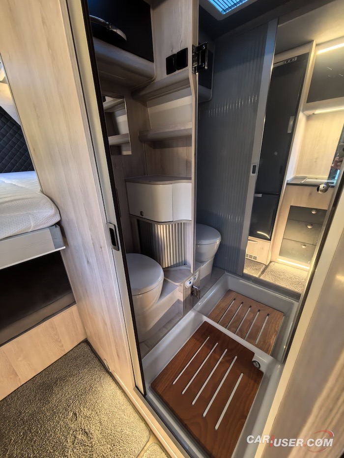 A bistvo Mega Sporta 640 se skriva v notranjosti. Ta je zares osupljiva! Nas so najprej navduši preproge, ki so bile tako prijetne, da sploh ni bilo potrebno opozarjati, da se v vozilu ne hodi obut. Pravzaprav je Mega Sport 640 zares sofisticirana hiša na kolesih, stikal in zaslonov pa toliko, da smo prvih nekaj dni le odkrivali, kakšno funkcijo opravlja določeno stikalo in zaslon. Kot že uvodoma omenjeno je imel naš testni avtodom predelavo „običajnega“ kombija, kar pomeni ogromna stranska vrata. Slednja sicer ponujajo obilico zračenja, a je zato celotna zasnova nekoliko posebna. Kuhinjski pult je namreč postavljen tako, da ga vidite pred sabo, a so pri Megamobilu to obrnili sebi v prid in dodali nekaj zanimivih bonbončkov, ki olajšajo preživljanje časa v naravi. Npr izvlečna mizica, dostop do posod od zunaj, predvsem pa vas ob vsamem vstopu pričaka stikalo s pomično stopnico, ki lajša vstop v vozilo.